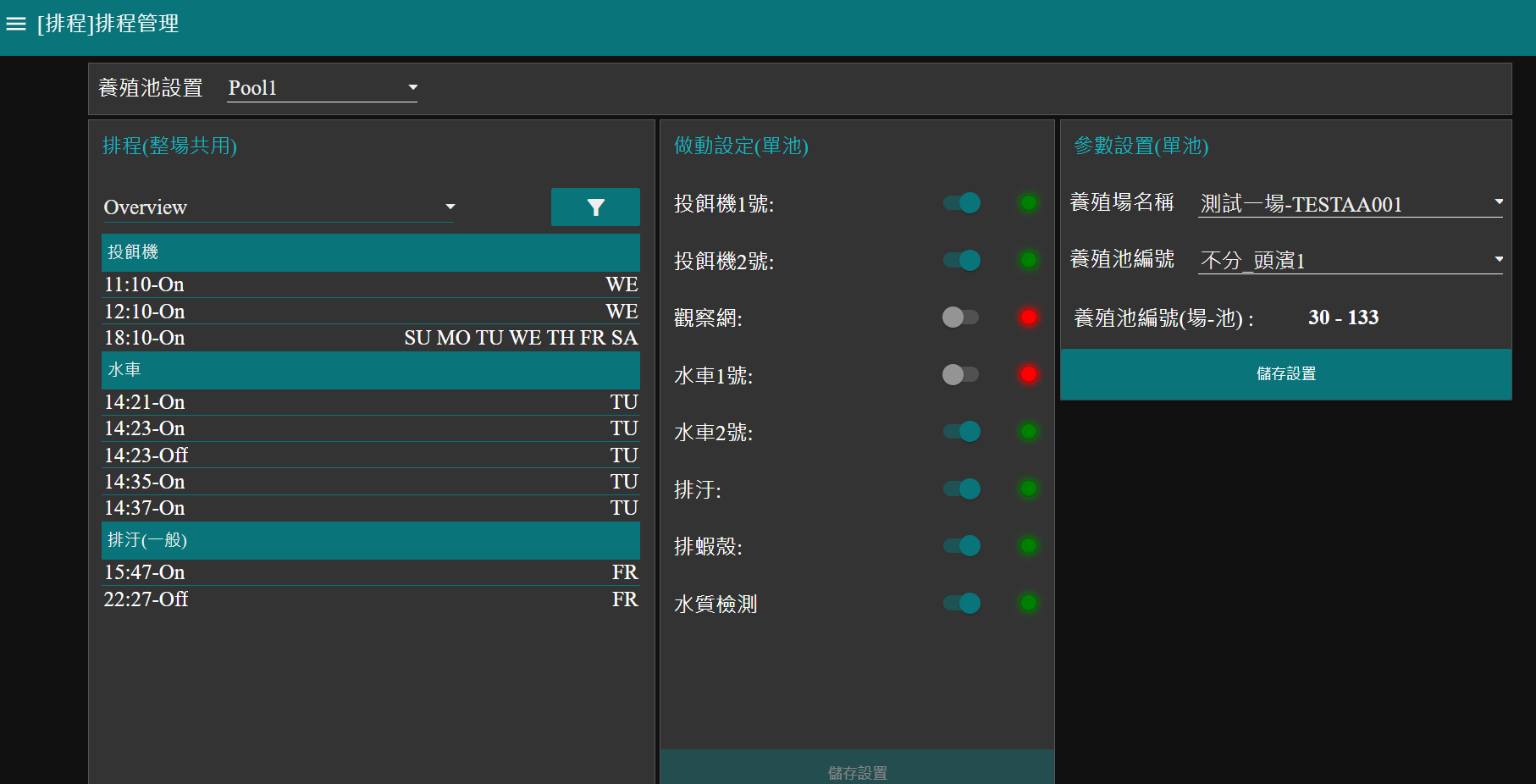 • 單池自動化控制:根據單池設置,自動觸發設備作動,提供針對性管理。