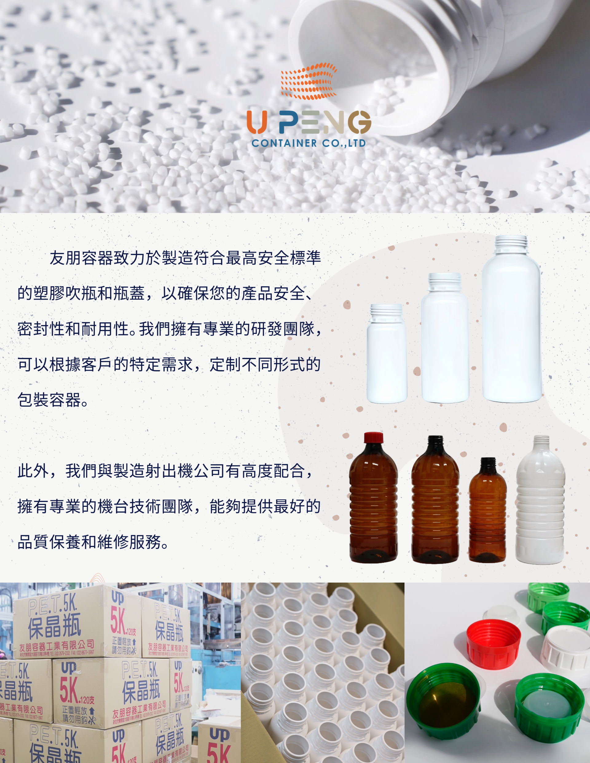 友朋容器專注於為農藥製造商提供高品質的包裝容器,同時我們也提供各種其他容器需求的解決方案。我們的產品範圍包括250毫升到1000毫升容量的塑膠瓶和瓶蓋,以滿足不同產業的需求。