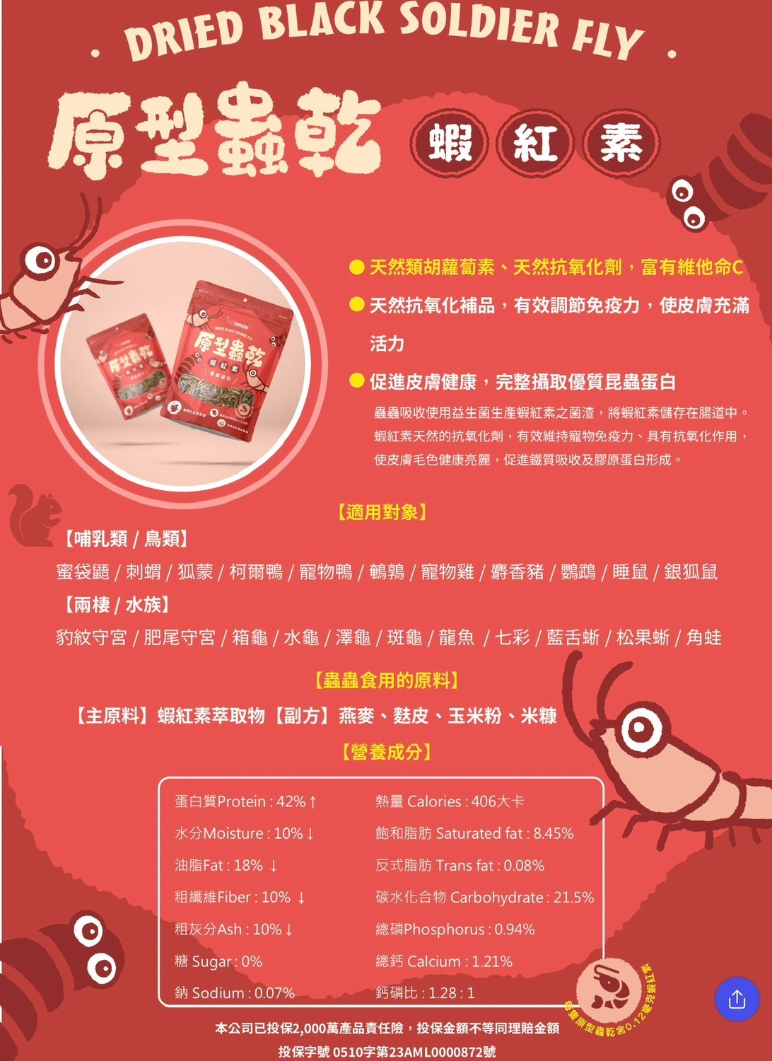 原型蟲乾 - 蝦紅素 / Dried black soldier fly - Brightening formula