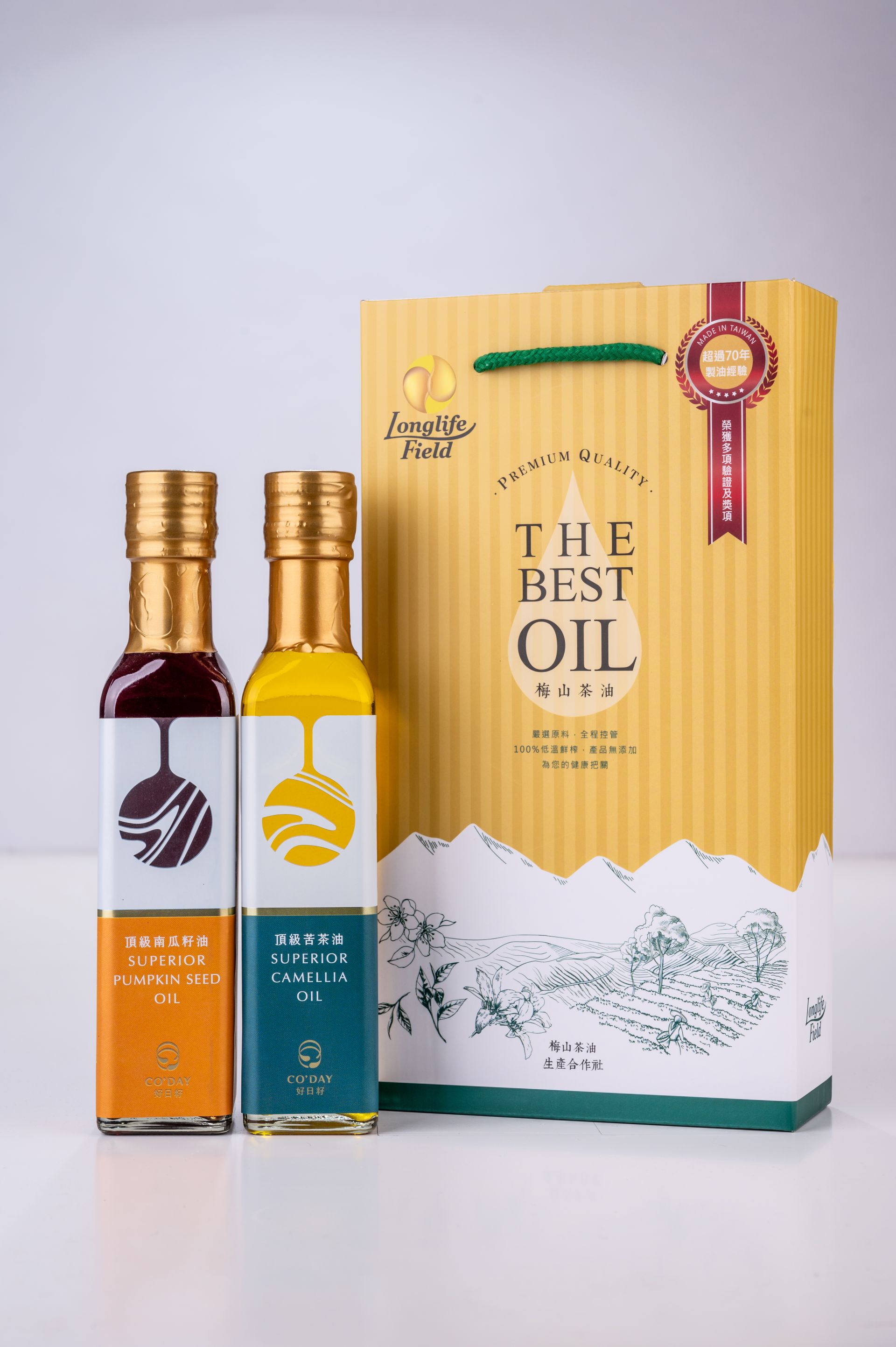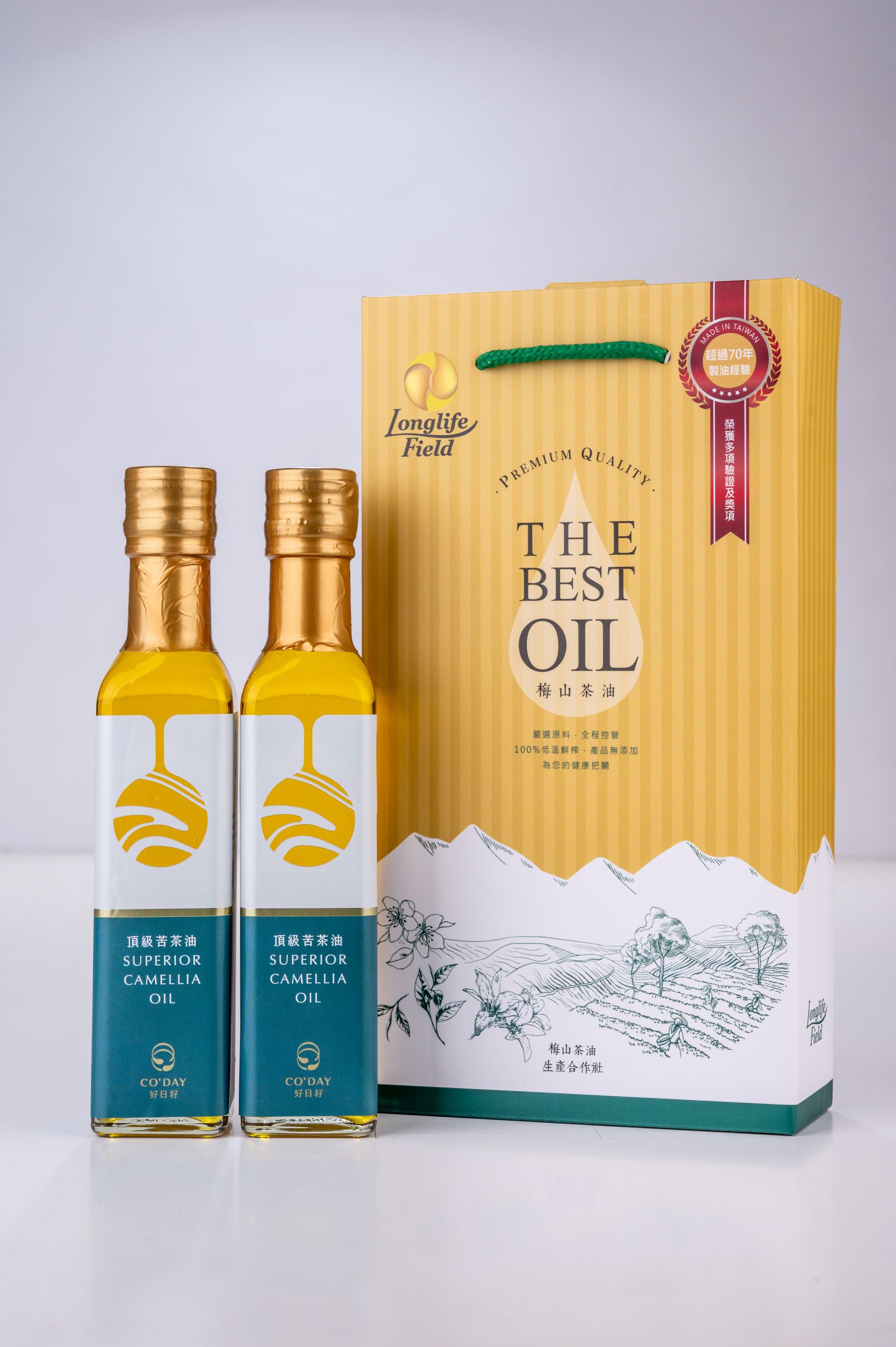 梅山茶油生產合作社成立於2006年4月,是台灣第一家茶油生產合作社,擁有超過七十年的專業食用油製造及銷售經驗。為了推廣健康且無添加的優質產品至國際市場,合作社於2010年成立了長壽田國際貿易有限公司,致力於讓更多人認識台灣的優質茶油,將台灣好油分享給全世界。