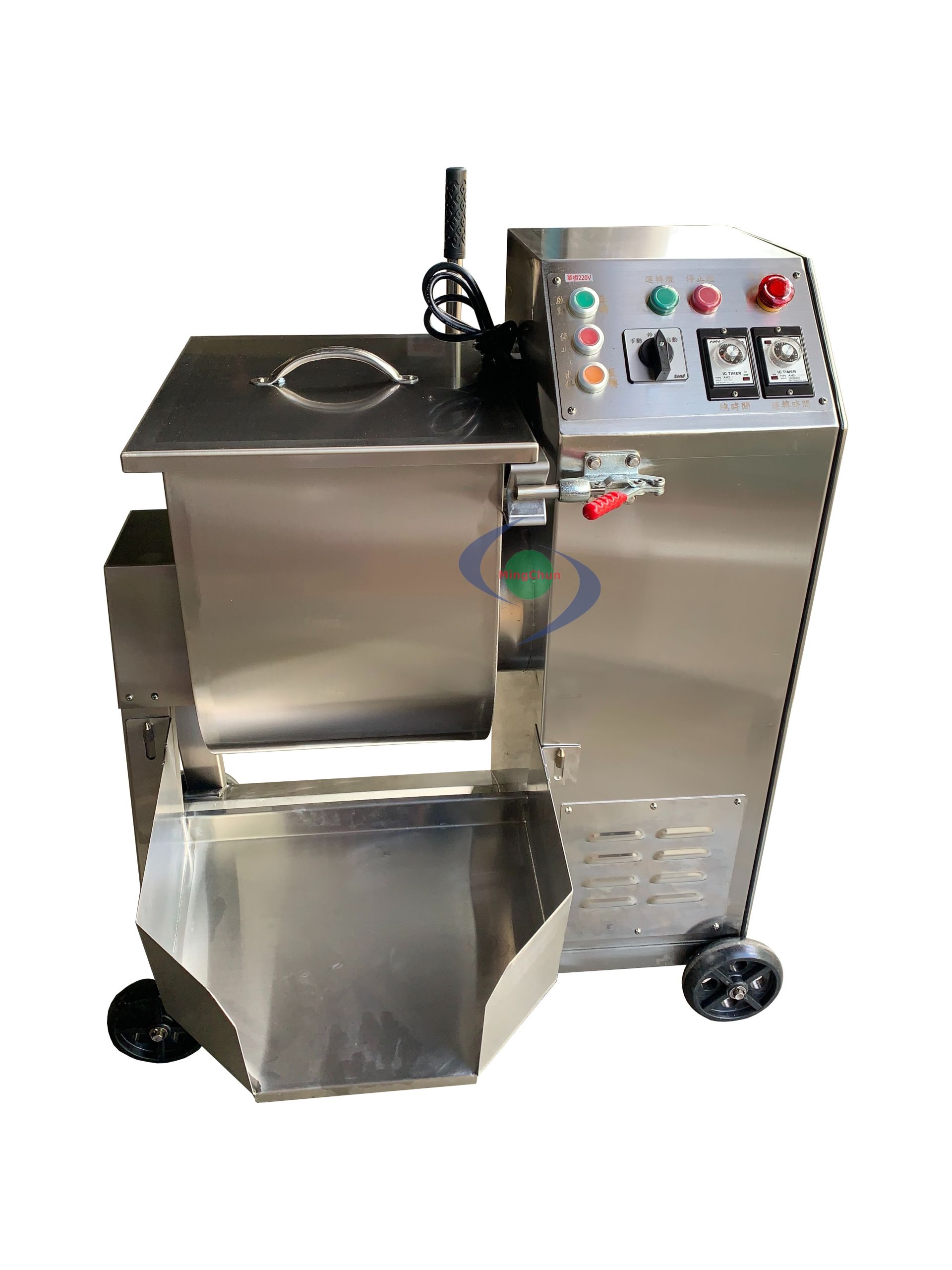 Food Mixer can mix the ingredients and filling, through T-type agitator arm to load the finished product. It equips with timer to control turning time for automatic and manual control, reversible function, over current protection. Time and labor saving, easy to operate and convenient.