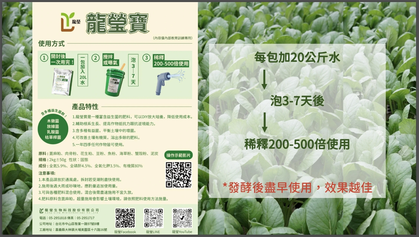 (1) 含有複合微生物的可溶性肥料,可提升土壤健康、促進作物生長,提高農業生產的可持續性。