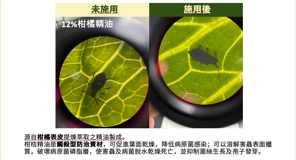 (3) 觸殺型防治資材,對介殼蟲、蚜蟲、粉蝨、葉螨的防治效果極佳。