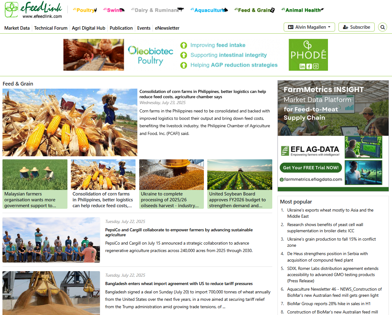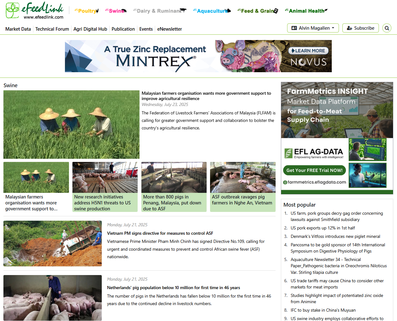 Gain more than 20,000 impressions every month on www.efeedlink.com - the go to information website for the global feed and livestock industries.