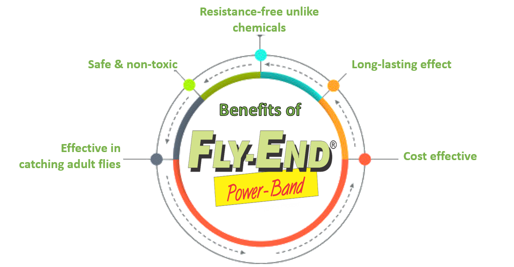 FLY-END Power-Band is a smart, eco-friendly innovation designed for efficient fly management across diverse environments. Acting as a Yellow Sticky Trap, it provides safe and chemical-free fly control in animal sheds, slaughterhouses, clinics, homes, restaurants, and gardens. With no resistance, toxicity, or environmental harm, it ensures a hygienic, fly-free space. Ideal for modern pest control needs, FLY-END Power-Band combines safety, versatility, and sustainability in one powerful solution.