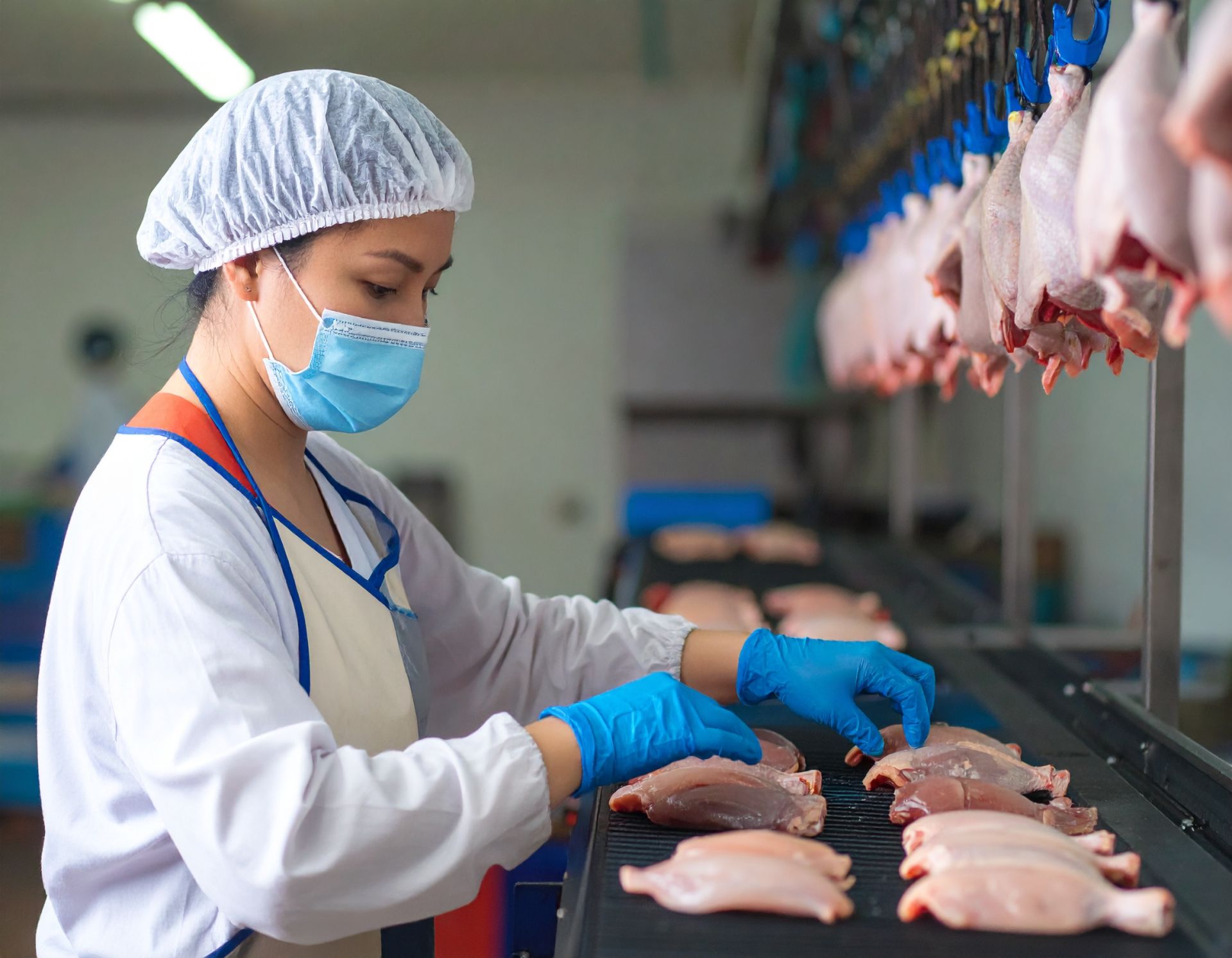 動物進場區(待宰區/畜舍)、屠宰區、進出口、分切加工區工作台、設備、浸泡池、冷藏庫與包裝區