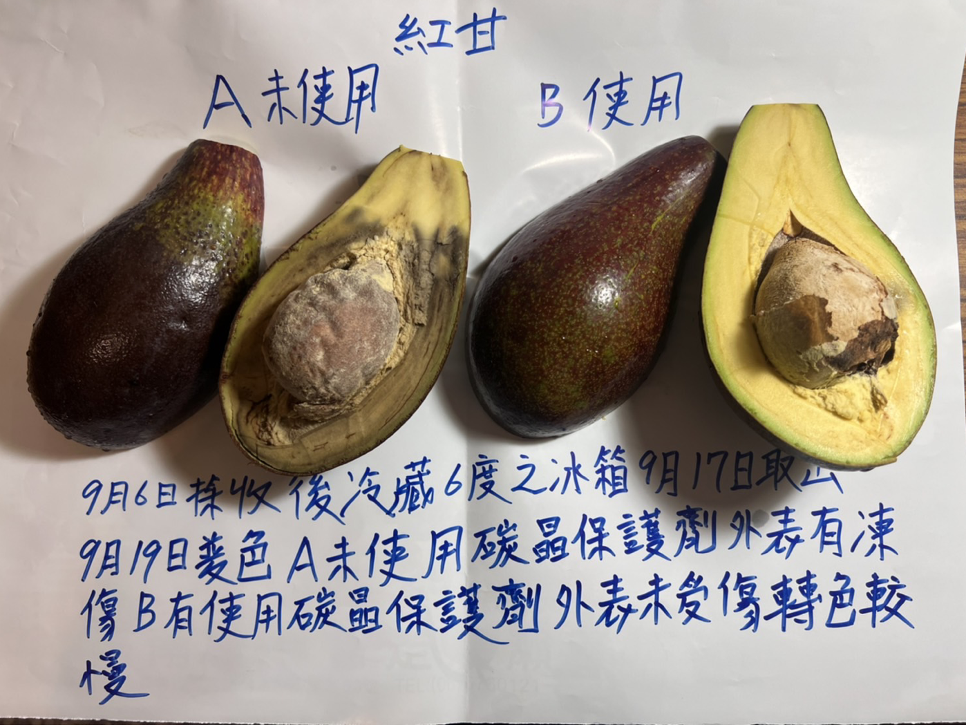碳晶讚由高濃度天然萃取之精油複方為活性物質、奈米化載體、多醣類複方組成,有效於農產品表面形成防護膜、以物理性包覆植物表層避免微生物滋生,達到抗病害及調節農產品呼吸作用,進而延長農產品保鮮力。