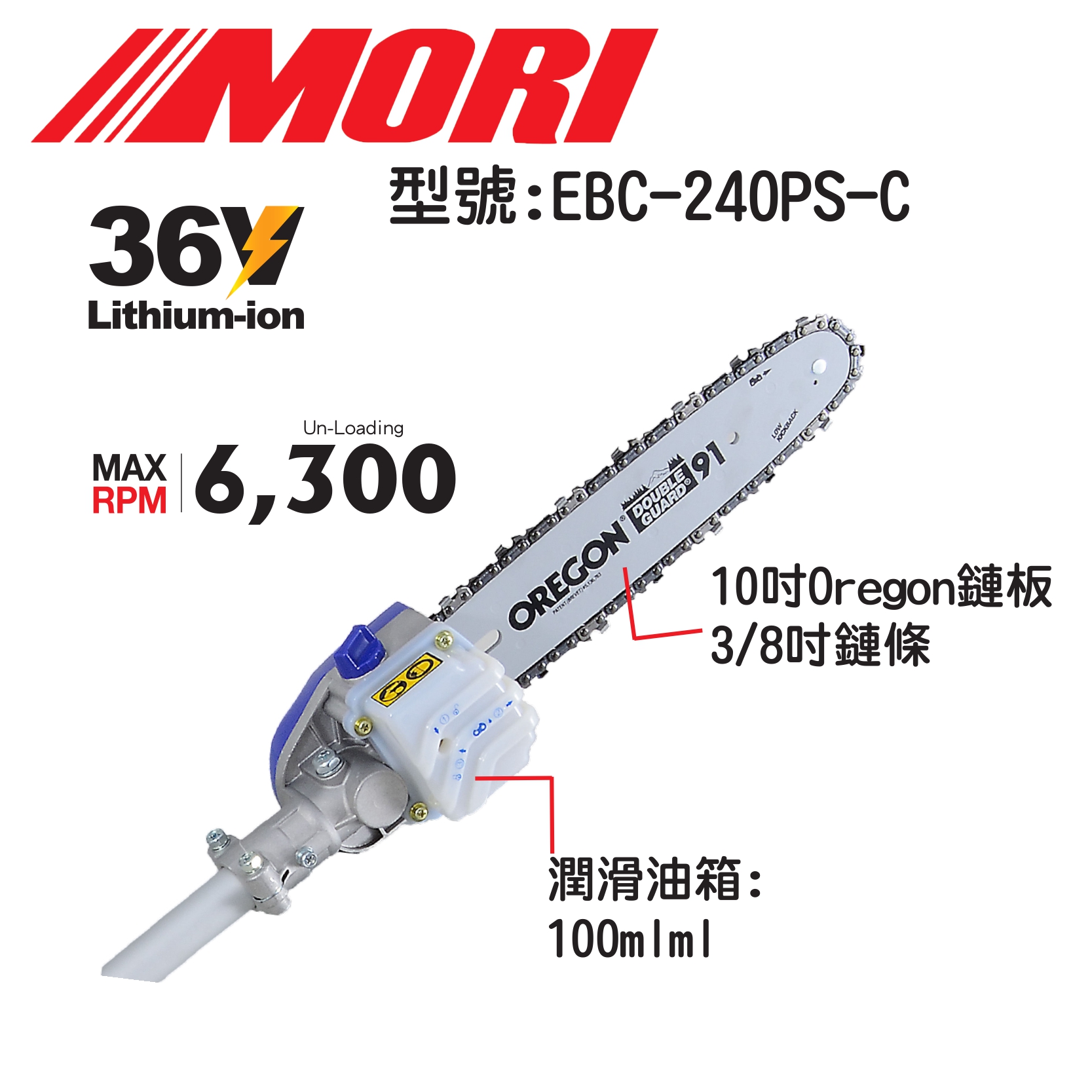 2. 鏈鋸長度為10"(美國Oregon廠牌)