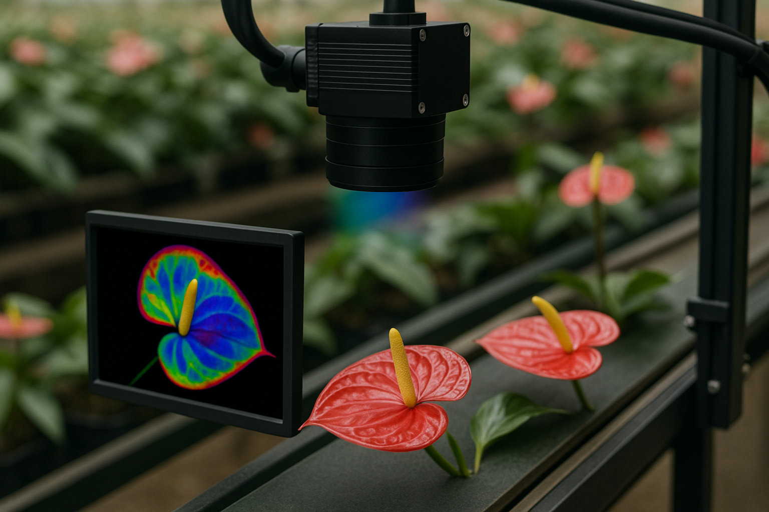 人力量測只能進行單次花徑量測,依照大小進行分級,火鶴花量測系統除了量測分級之外,也可自動記錄花徑數據和留存影像,以供後續分析與研究使用。