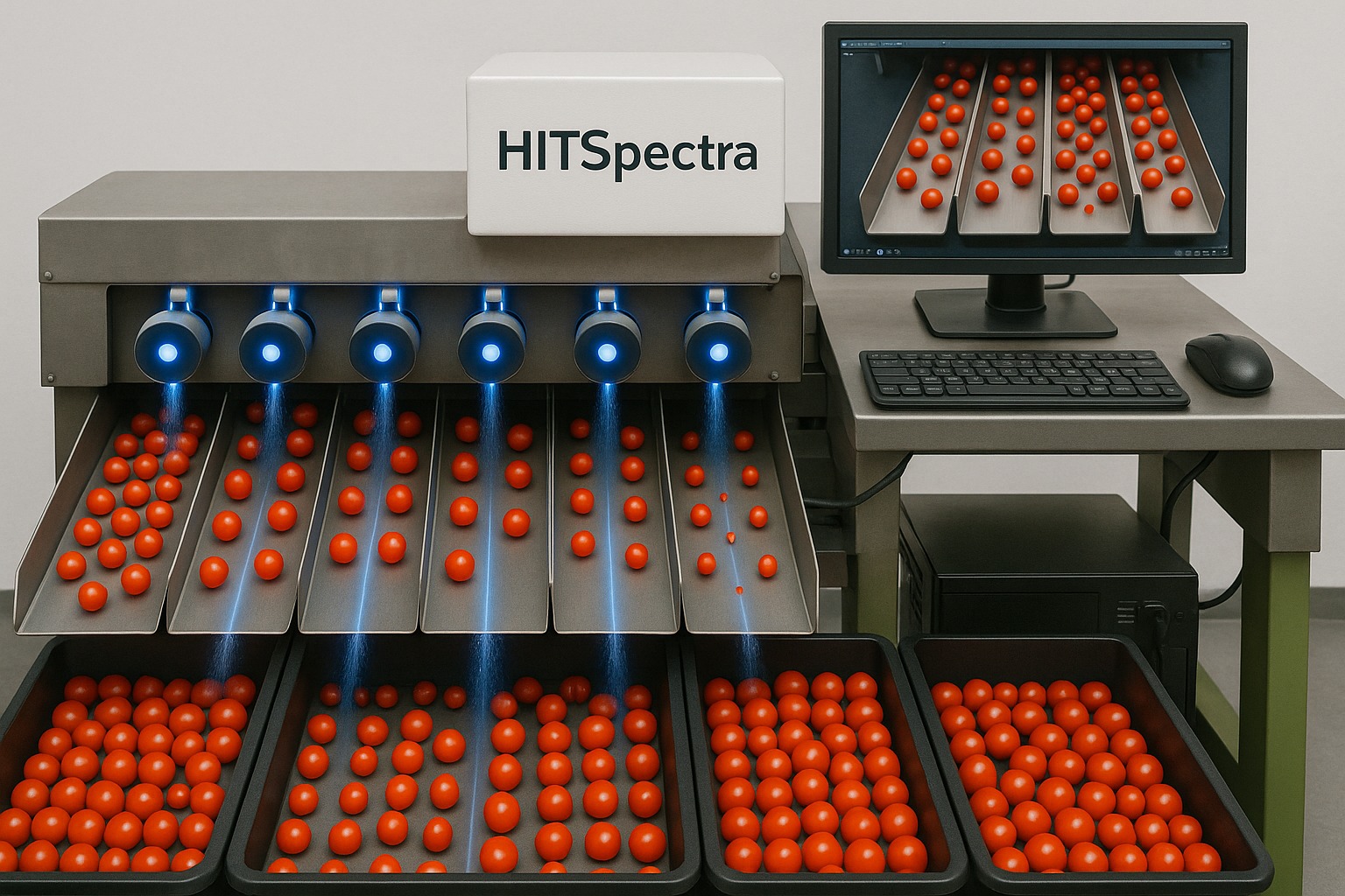 小番茄智能選別機透過自動化技術進行果實的檢測與分級,減少人工干預,提高工作效率。