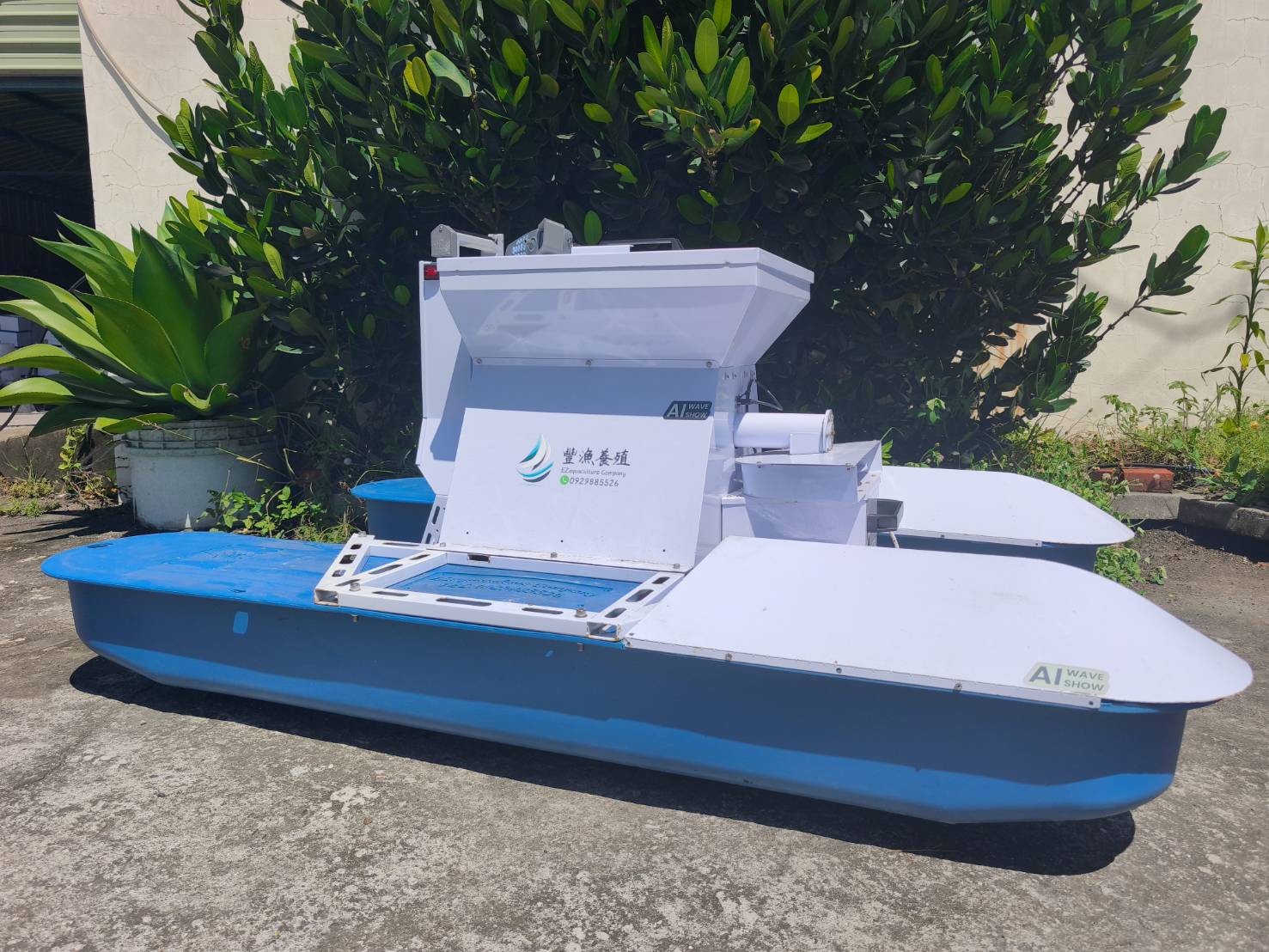 漁電共生最佳夥伴: 針對太陽能板下方作業空間受限之痛點,船體具備精準避障與低矮化設計,實現自動化導航作業,免除人工在板下投餵的辛勞。