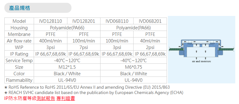 ● 高微孔空隙PTFE薄膜,能快速排出溼氣與壓力。