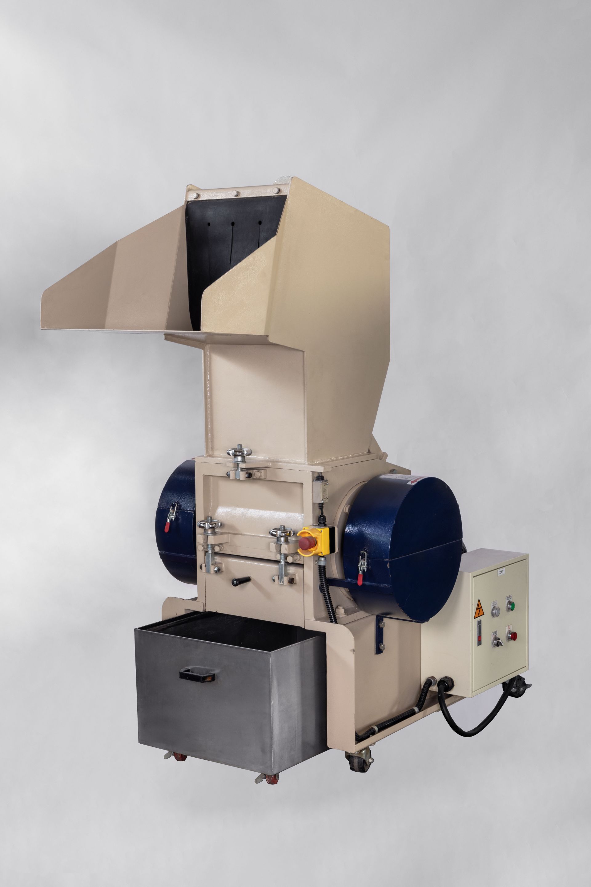 因原料大小過於多種可根據原料大小克制化出料口大小與馬力(反觀機台大小會與之改變)。