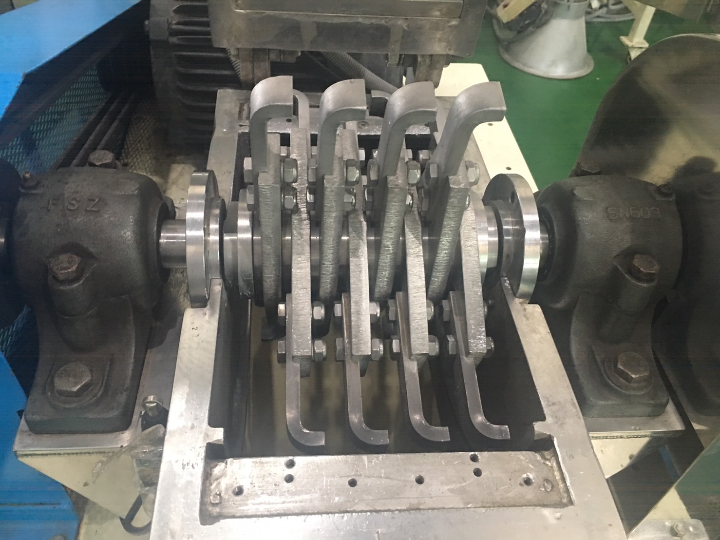如若原料件過大而使衝力大於離心力時,則刀片會後退以保護刀軸,如此循環作用形成粉碎。