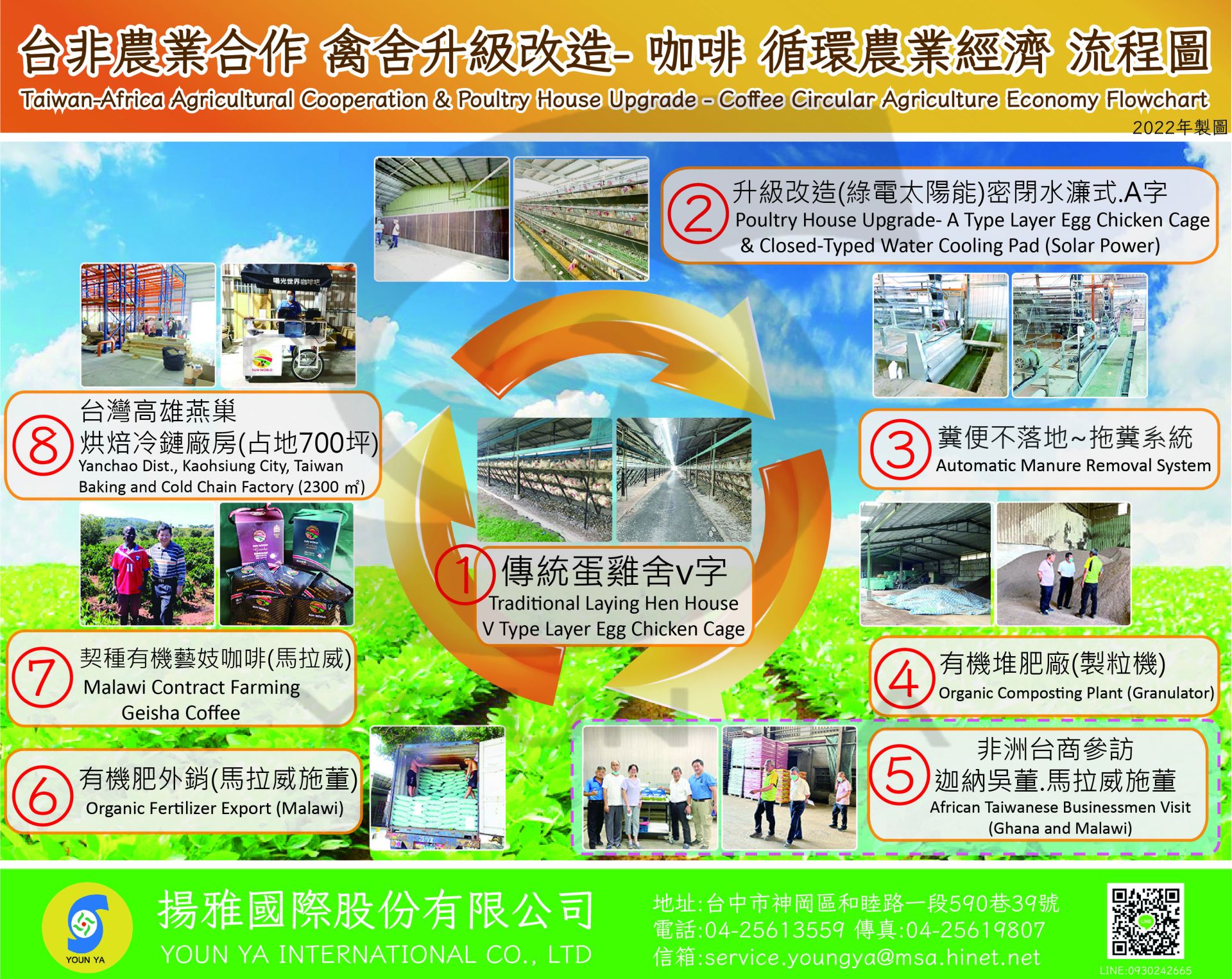 The livestock and poultry that have died of disease, the feces produced during breeding, neutron eggs, and various organic wastes that have no economic value during the agricultural production process or after harvesting are used to dry these organic matter using a professional solar energy tracking ~ negative pressure rapid drying system. Waste is re-created/reused, made into litter and feed for livestock and poultry, and made into fertilizer to feed back and conserve the land.-