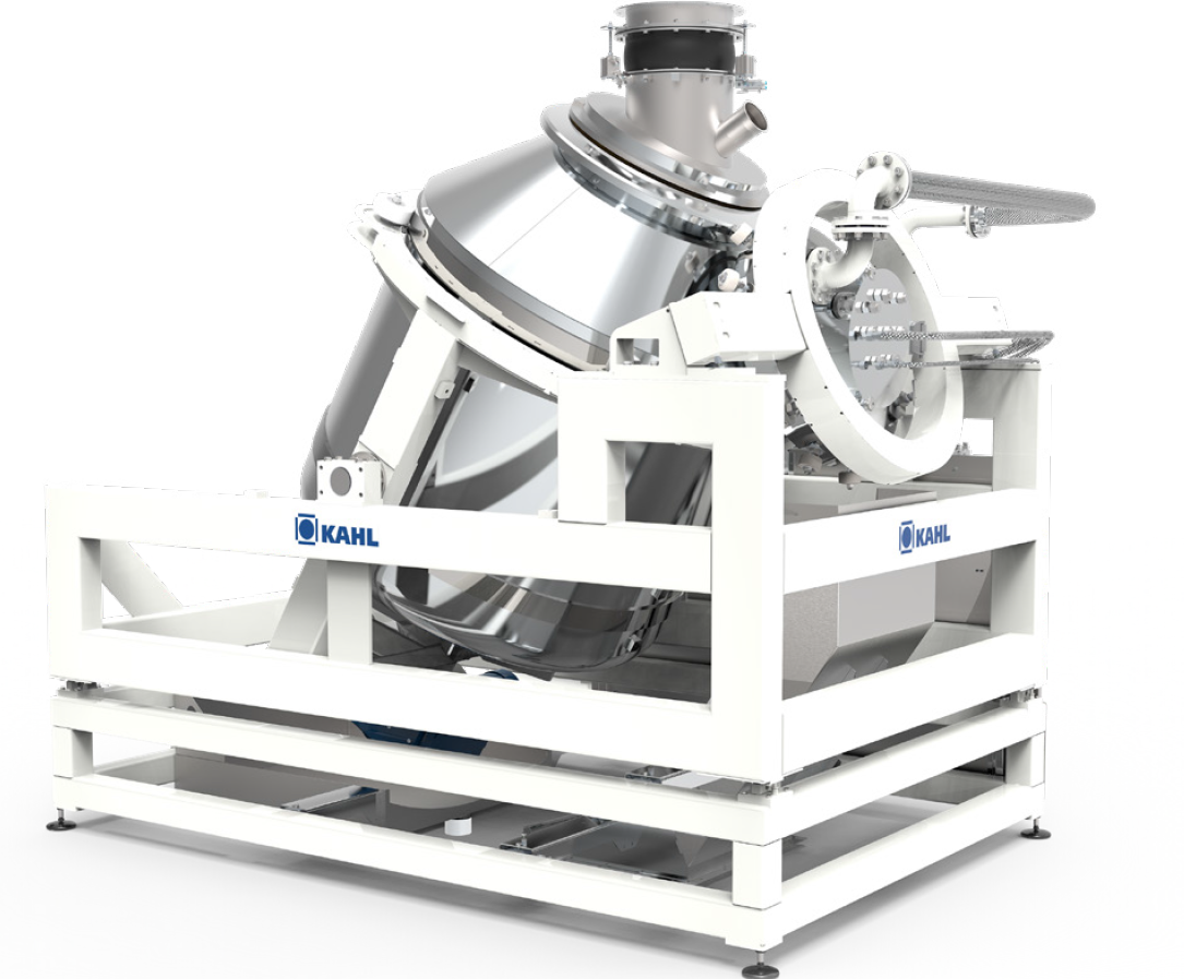 The KAHL Vacuum Coater is an advanced post-processing system engineered to enhance feed quality and energy content by infusing liquids—such as oils, enzymes, or vitamins—deep into pellet pores under vacuum, achieving oil addition between 4–40% . Unlike traditional mixers with moving agitators, it employs a rotating drum with internal mixing flights, minimizing mechanical stress on pellets and significantly reducing fines and micro-cracking.