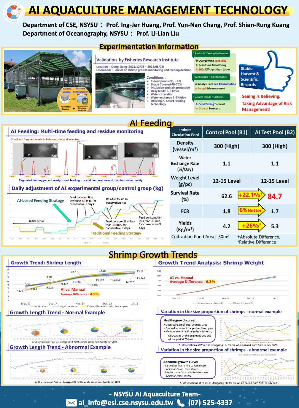 -Validated by the Fisheries Research Institute in Tungkang, this system has been proven to increase shrimp survival rates by 20%, improve the feed conversion ratio by 6%, and boost overall production by 26%.