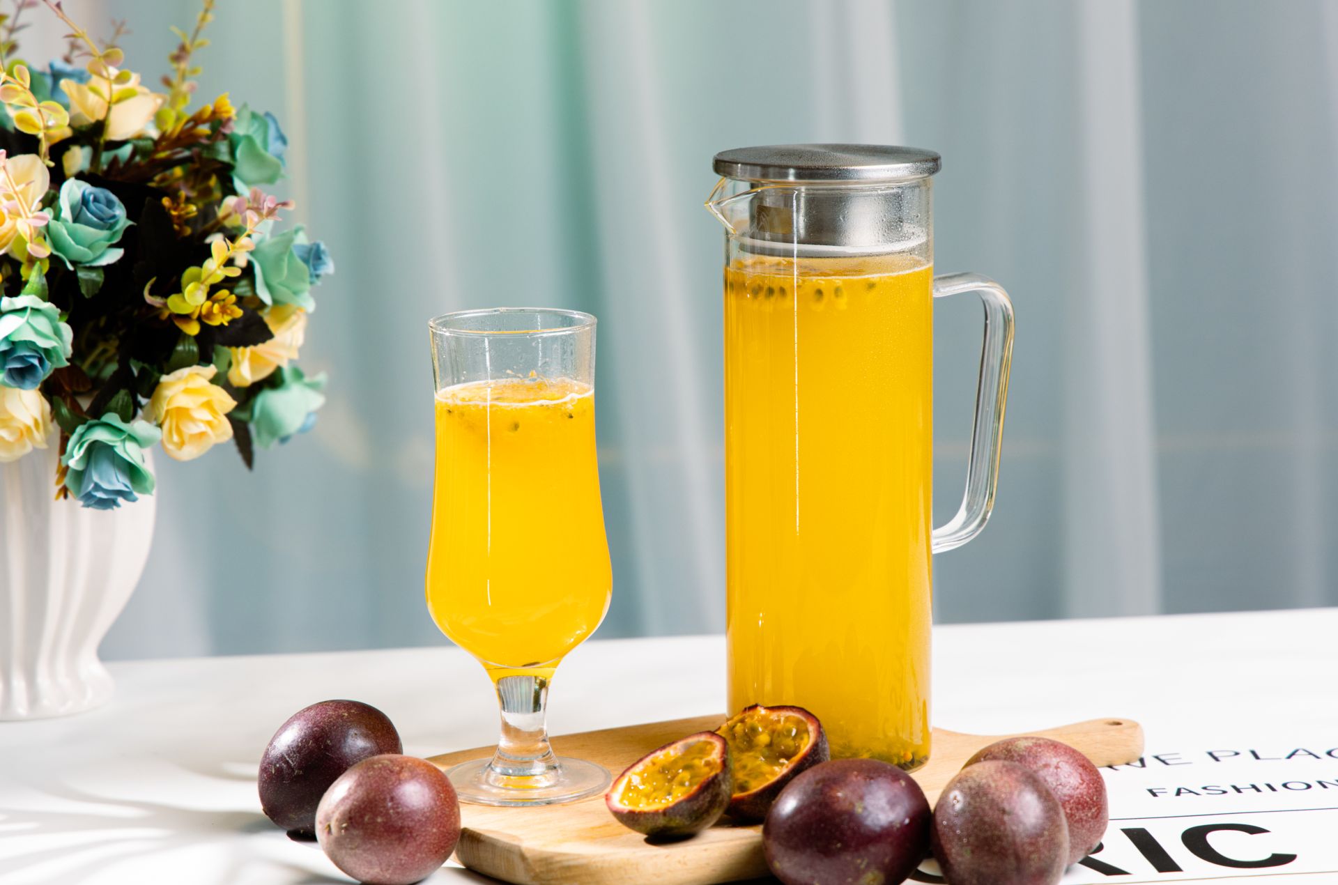 3、Add ice water to a water level of 1100 milliliters (sugar water+passion fruit+ice water=1100 milliliters)