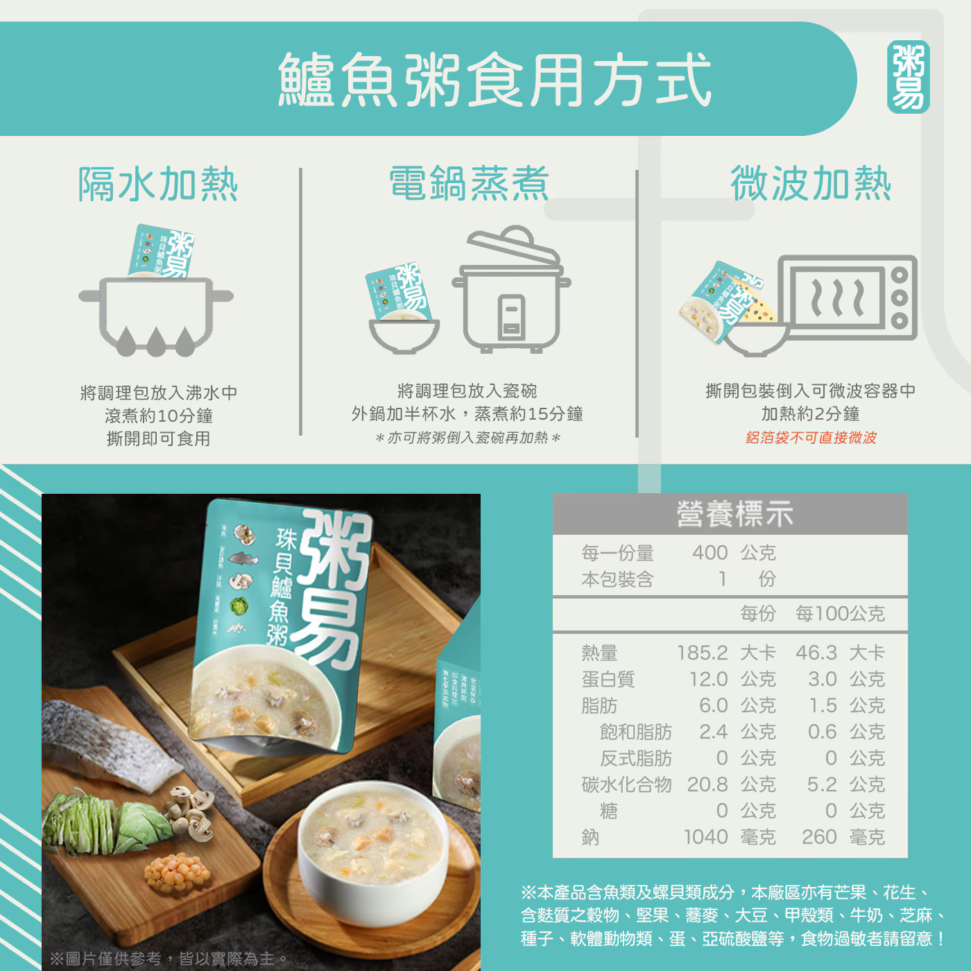品名 : 粥易 珠貝鱸魚粥 400公克 X 6 包