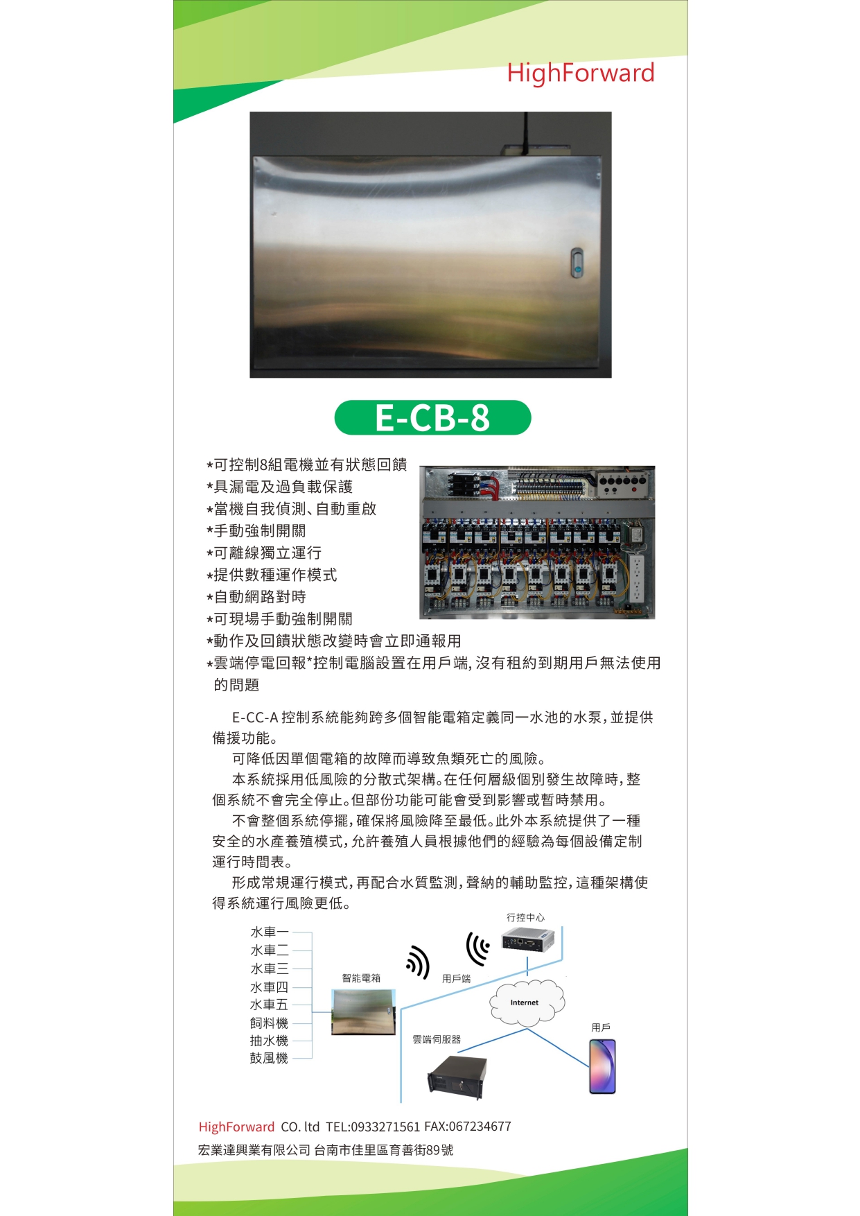 The HighForward E-CB-8 Smart Electric Box is a smart power control hub specifically designed for aquaculture farmers. It aims to provide the most stable and secure smartized power control and comprehensive equipment protection. It significantly reduces power risks in aquaculture farms, ensuring the smooth operation of your aeration and water pump equipment, making it a critical foundation for achieving aquaculture automation.