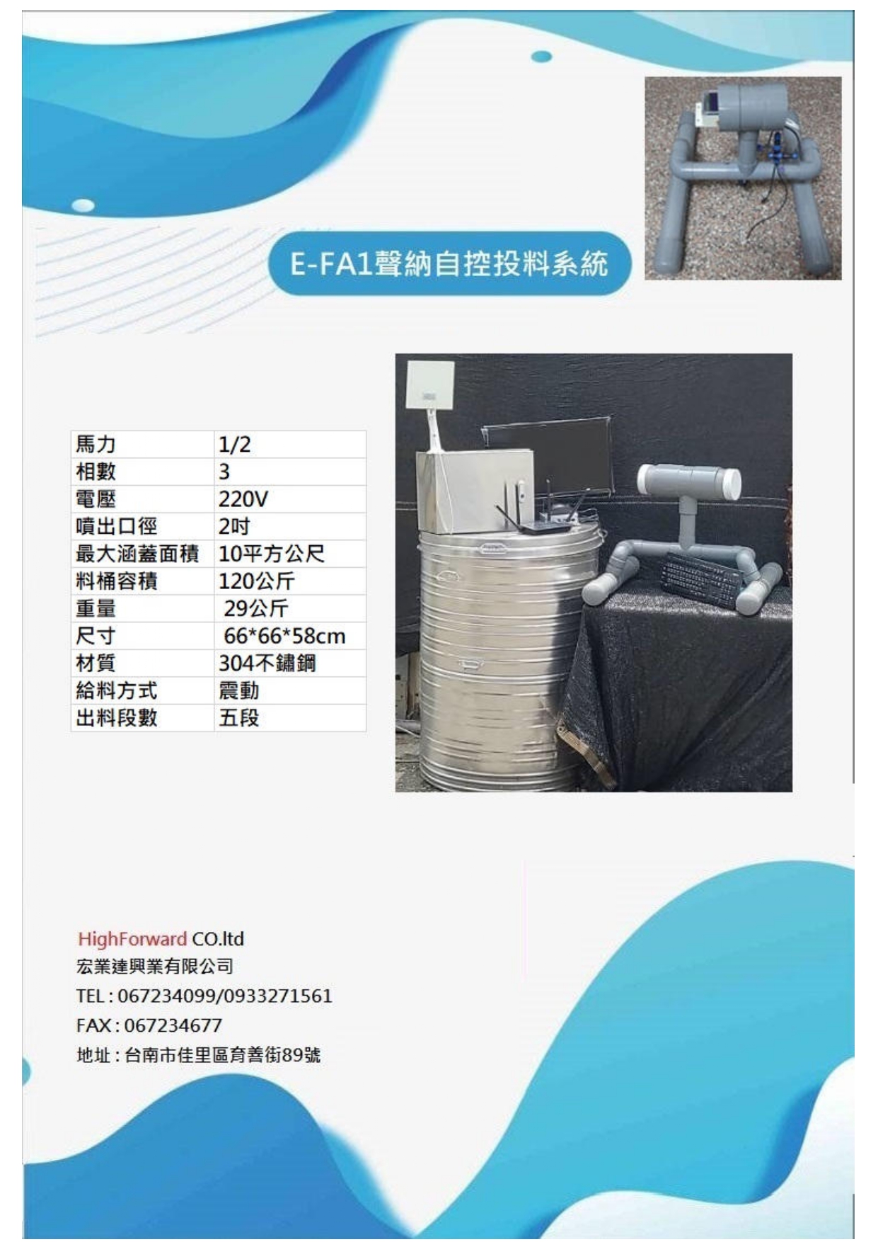 The HighForward E-FA1 Sonar Automatic Feeding System utilizes advanced and unique sonar detection technology to completely revolutionize your aquaculture feeding model. It accurately determines the fish's feeding status, automatically adjusts the feeding amount, thereby achieving precise feeding, eliminating feed waste, effectively preventing water pollution, and accelerating the healthy growth of fish and shrimp, significantly improving your aquaculture efficiency.