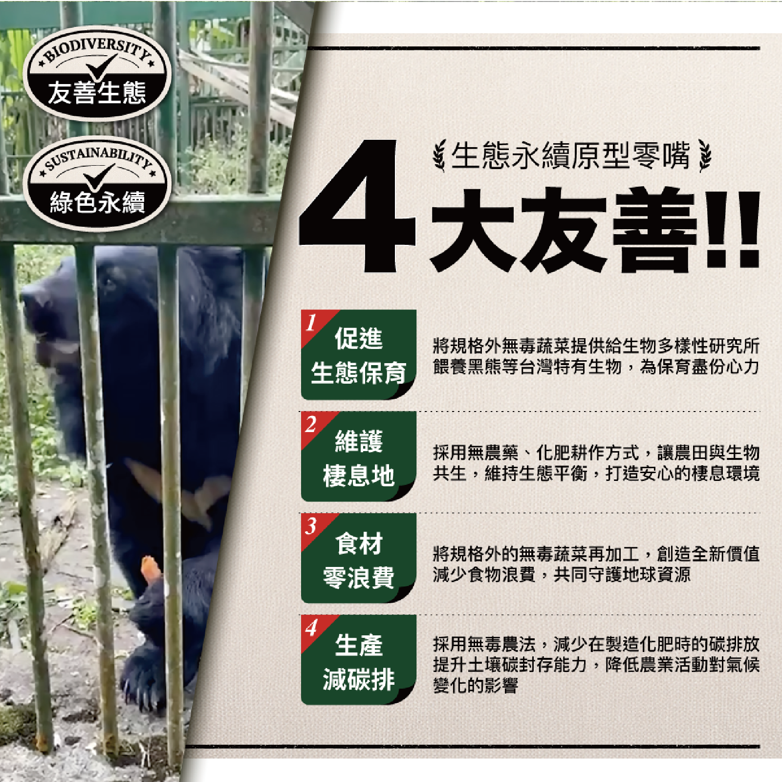 We're committed to zero food waste—imperfect beets are donated to the Biodiversity Research Institute to help feed Formosan black bears and other native species, contributing to ecological conservation.