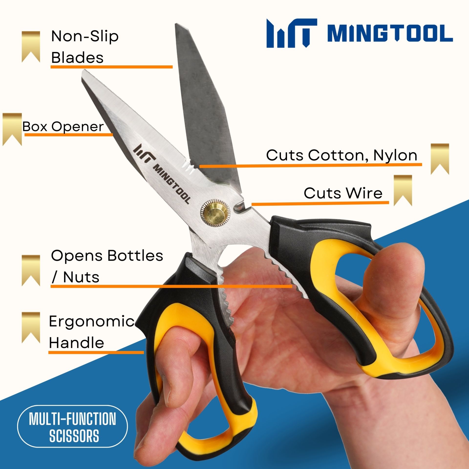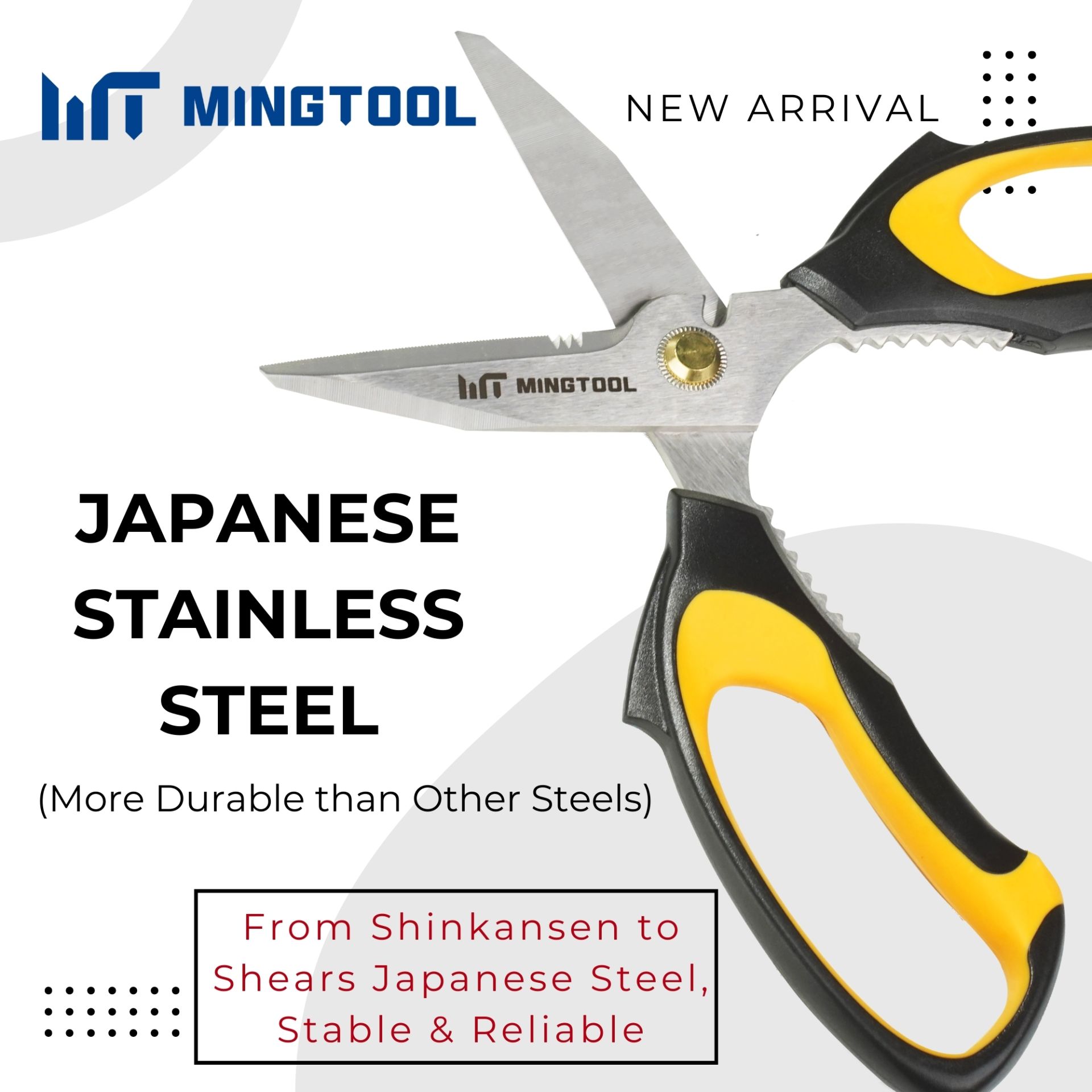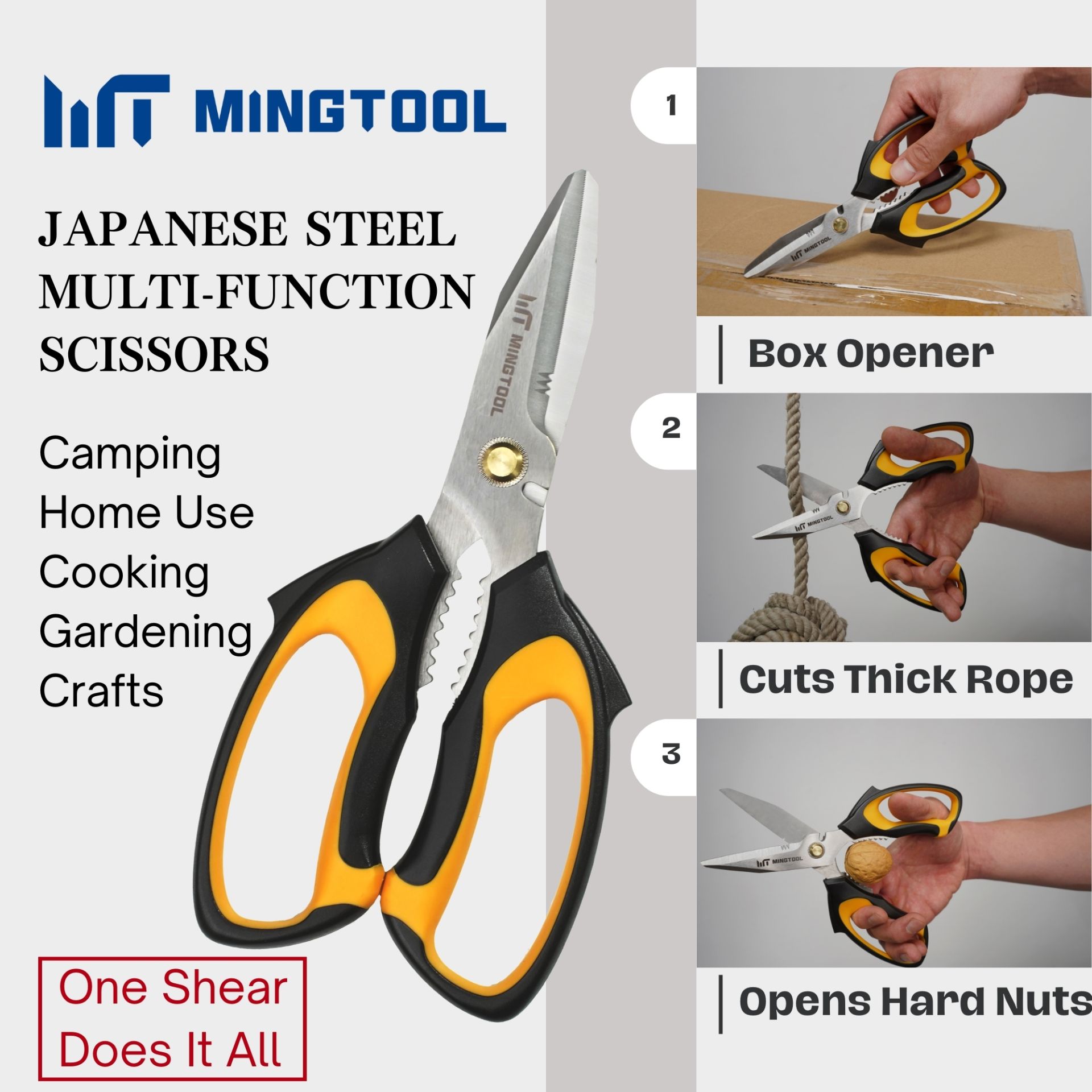 A high-performance universal scissors within the multi-function series. Crafted from premium Japan stainless steel with thickened 3.0mm blades, it is specifically engineered to handle various types of materials. Its powerful cutting capability effortlessly tackles metal sheets, thick leather, and artificial turf, while the adjustable joint screw ensures consistent precision across different tasks.