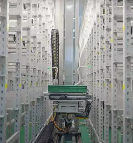 3. 架式育苗區,智慧化操作一鍵動作將種苗送到堆疊層架依計畫生長,減少人力搬運作業,目前為全台灣擁有最高層架式種植可自動進出菜的公司。