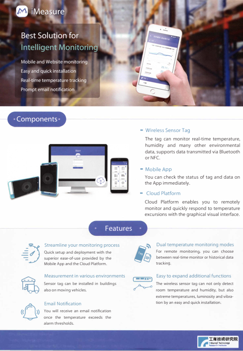 1.溫溼度感測-可依場域選擇BLE或Wi-Fi不同通訊協定之無線感測記錄器,即時監測溫度、溼度等不同環境訊號。