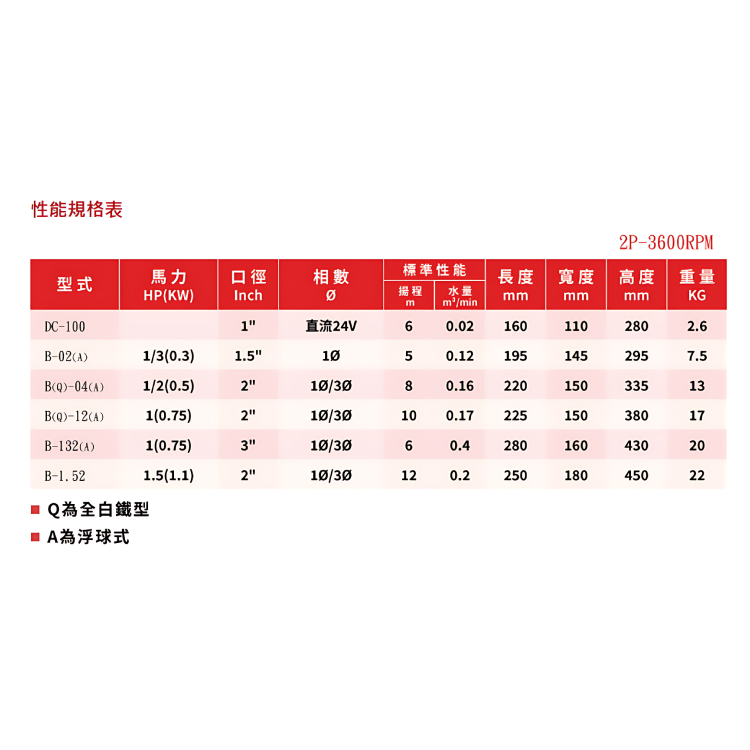 5.本系列泵浦皆採用全新馬達矽鋼片、軸心、轉子經高速精密加工,使馬達運轉穩定。※2HP以下(含)均可選配加裝浮球開關。