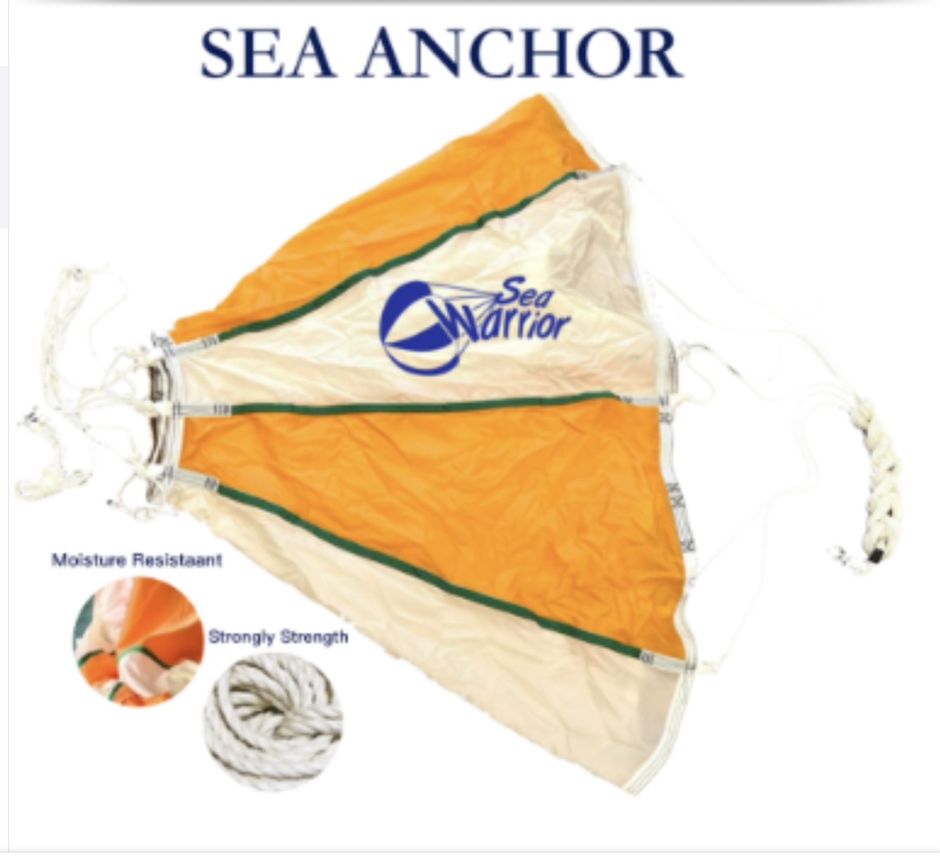 本傘錨應用流體力學,使用特殊尼龍格子布與高密度編織繩配合純熟技術與經驗製成,此尼龍格子布比一般傳統尼龍布更耐用,壽命更長,為本公司與國內知名紡織大廠合作開發之成果,其拉力強度與抗酸鹼能力絕對能應付船舶在各類情況上的需求;高密度編織繩不但能承受高強度拉力,且具有約30%的延展性來緩衝拉力,耐力特強(亦可選用PE材質的繩索,除可降低售價,且重量較輕,但是相對的拉力比尼龍材質低,適用於尺寸較小傘錨),而收取容易,操作簡易更說明本海流錨的實用性。
