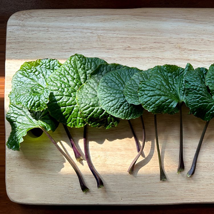 山葵葉與根一樣辛辣又香,春天是山葵葉旺季。為高經濟價值作物,生長條件非常嚴格,具有殺菌與助消化功能。可以用醬油烹煮,作為下飯、下酒的小菜,甚至可以蘸上粉漿之後炸成天婦羅。