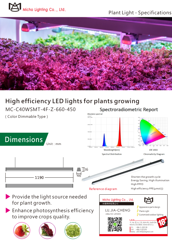 Suitable for indoor cultivation on scaffolding, hydroponics of crops of high economic value, providing stable energy for plants that imitate sunlight, increasing productivity and shortening the growth cycle, producing high anthocyanins and carotenoids, and reducing the number of plant lamps with a long life of 5-10 years Cost expenditure, high-efficiency plant lights create rapid cost recovery for crops