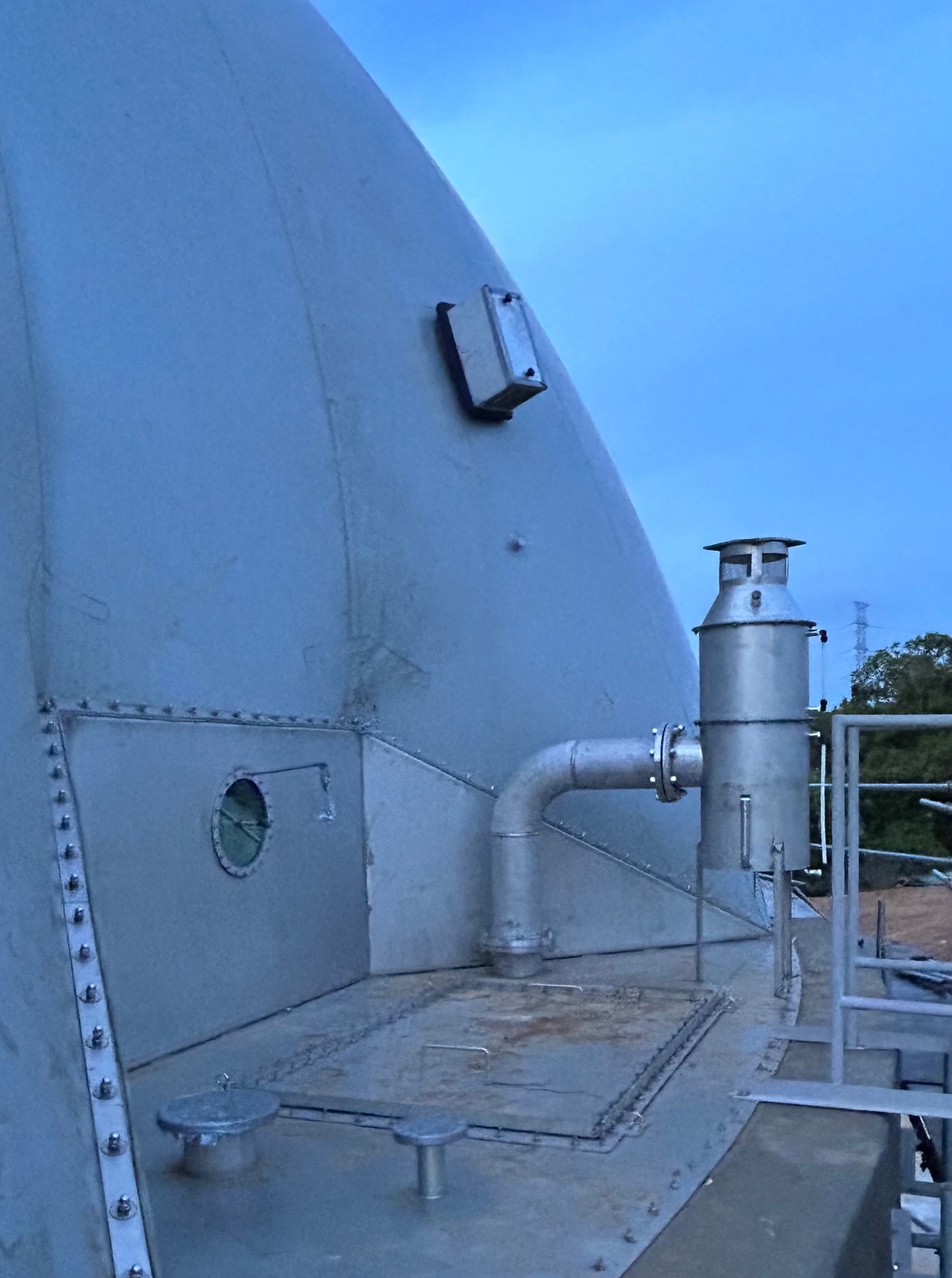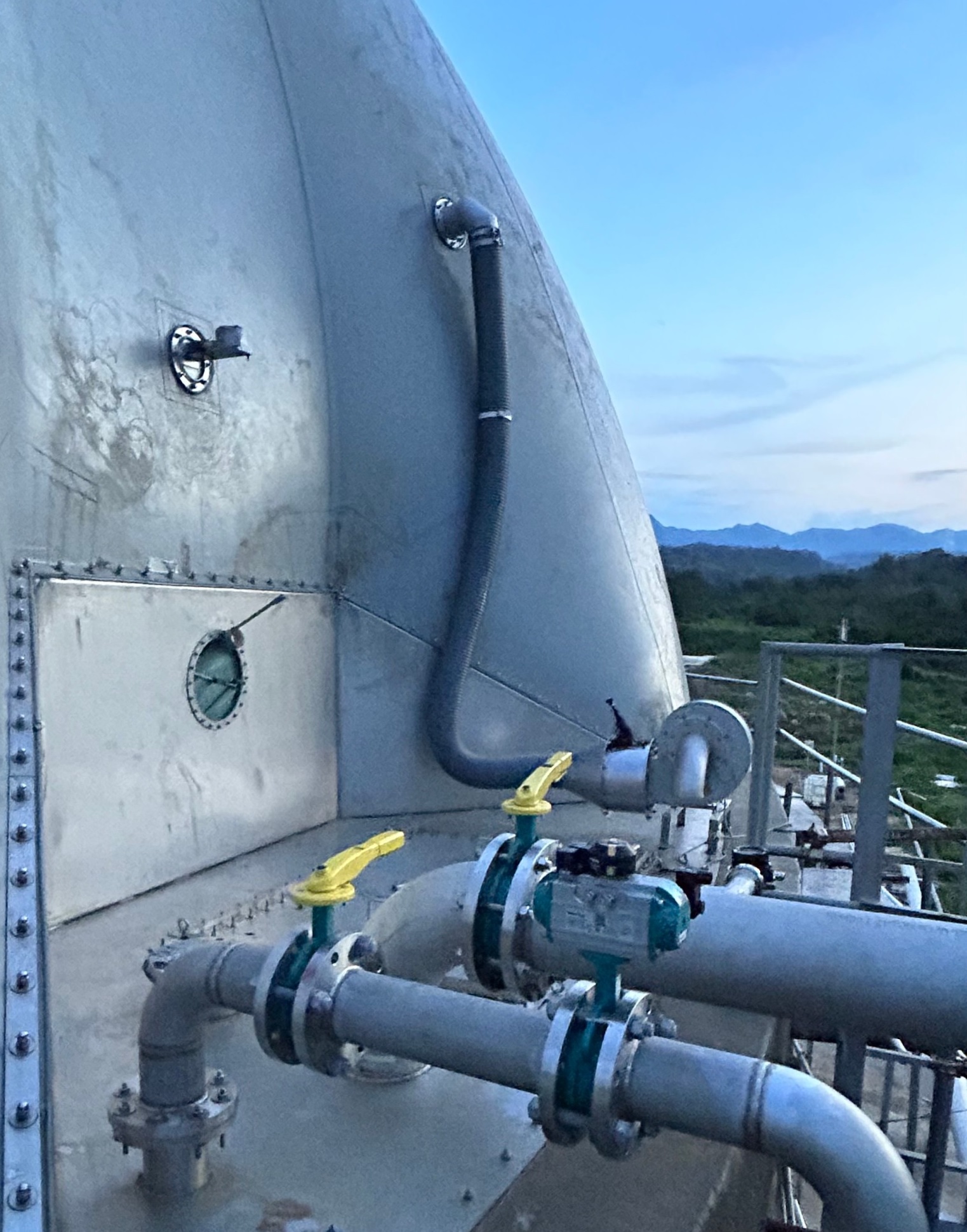 系統結合 共厭氧消化(Co-digestion) 模式,能靈活加入食品加工廢棄物、農業剩餘物等有機資源,將單一發酵槽的發電效能由 200 kWh 提升至 500–600 kWh。其設計導入 噴流混合裝置 確保物料均勻發酵,並搭配 智慧電子控制 進行全流程監測,包含溫度、氣體成分與壓力參數,確保系統運行穩定。