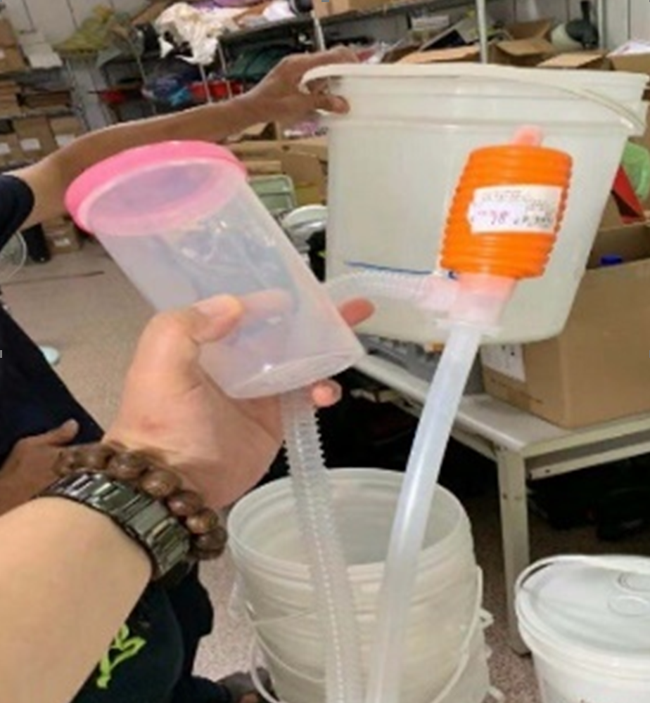 3.然後將20公升空桶裝滿自來水後停放五分鐘後即可使用