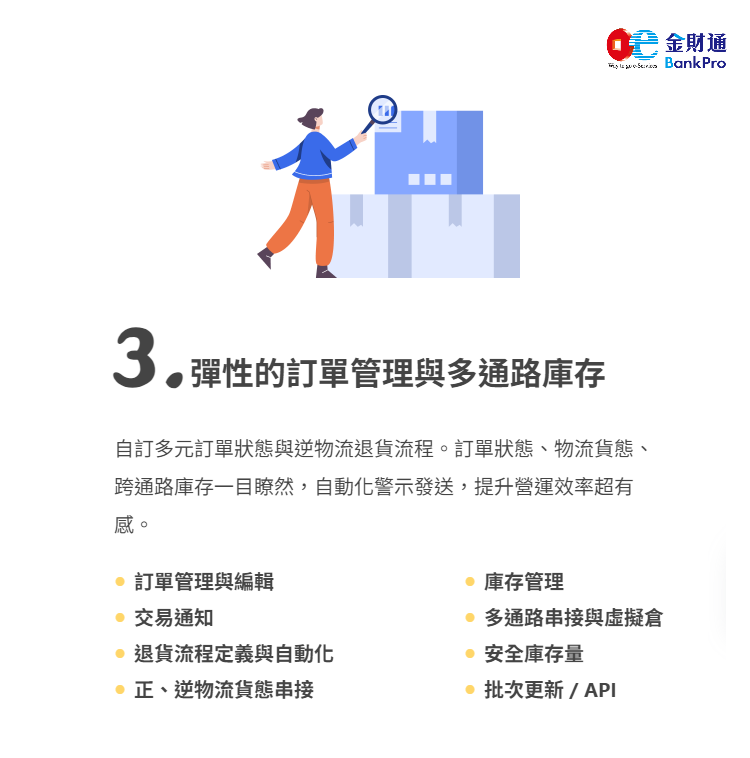從物流到多元支付工具、開立發票以及廣告追蹤,企業內外部系統與第三方工具,一應俱全。