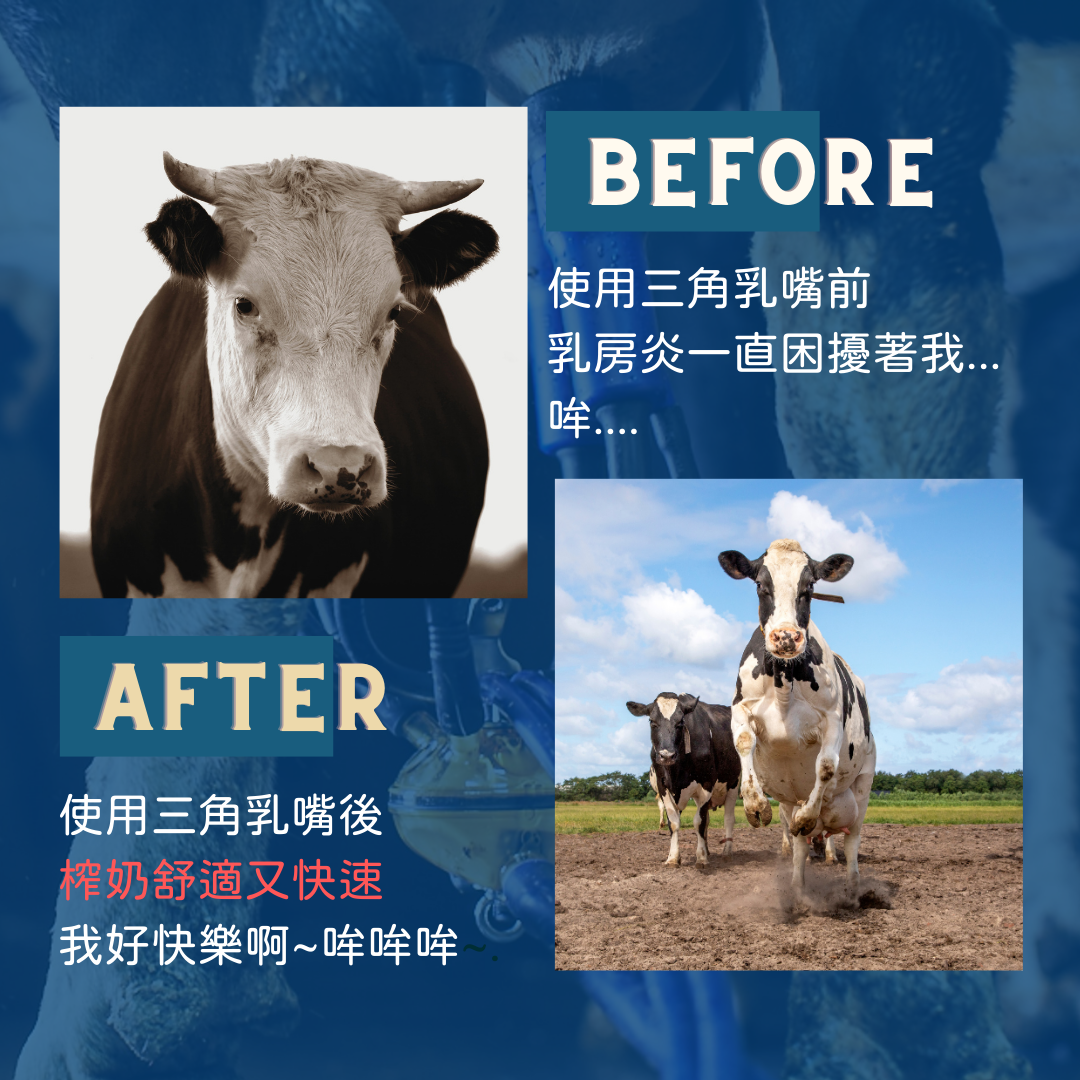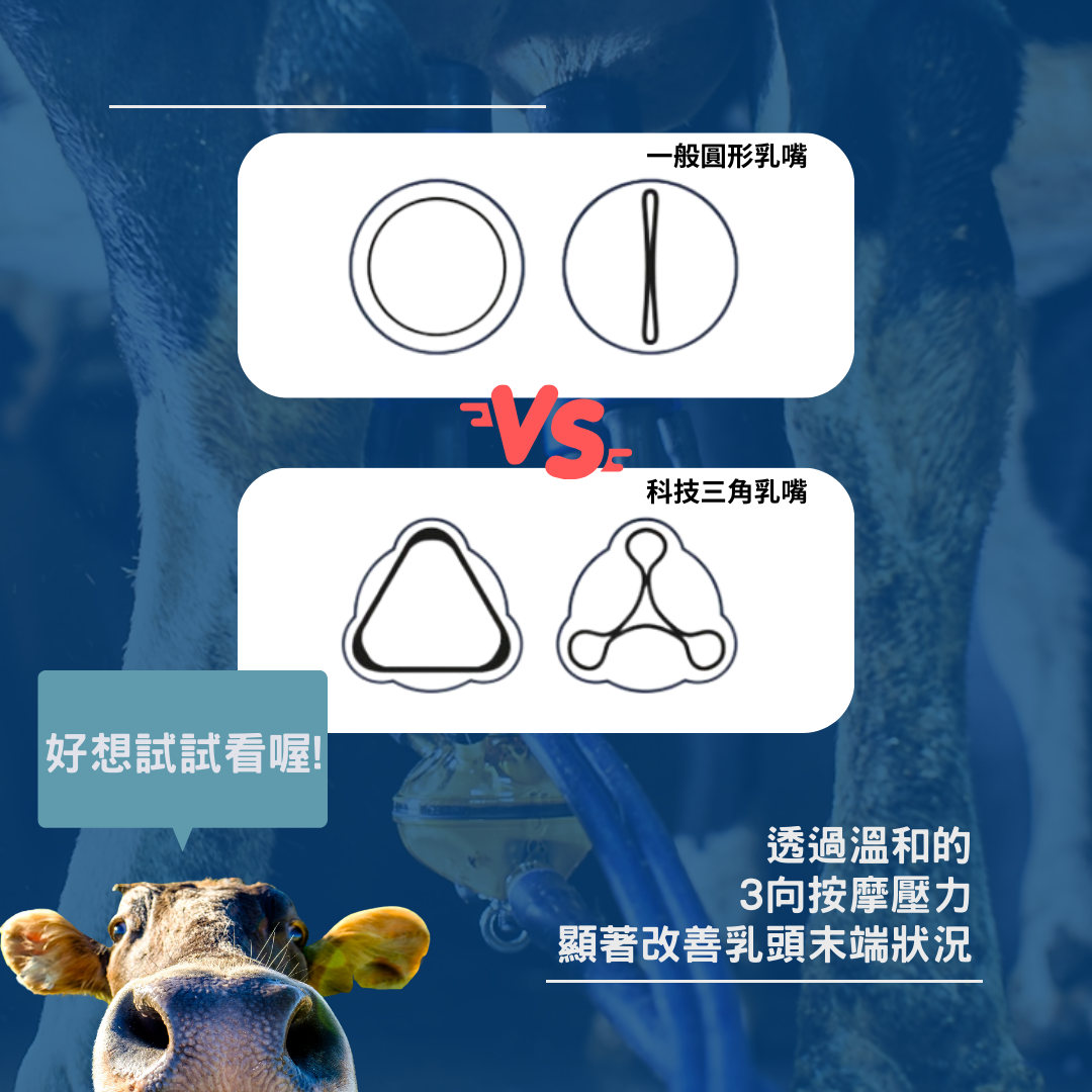 ▲三角乳嘴設計 提高了乳嘴對乳頭的貼合度,減少擠奶過程中的滑落與踢踢現象(kick-offs)。