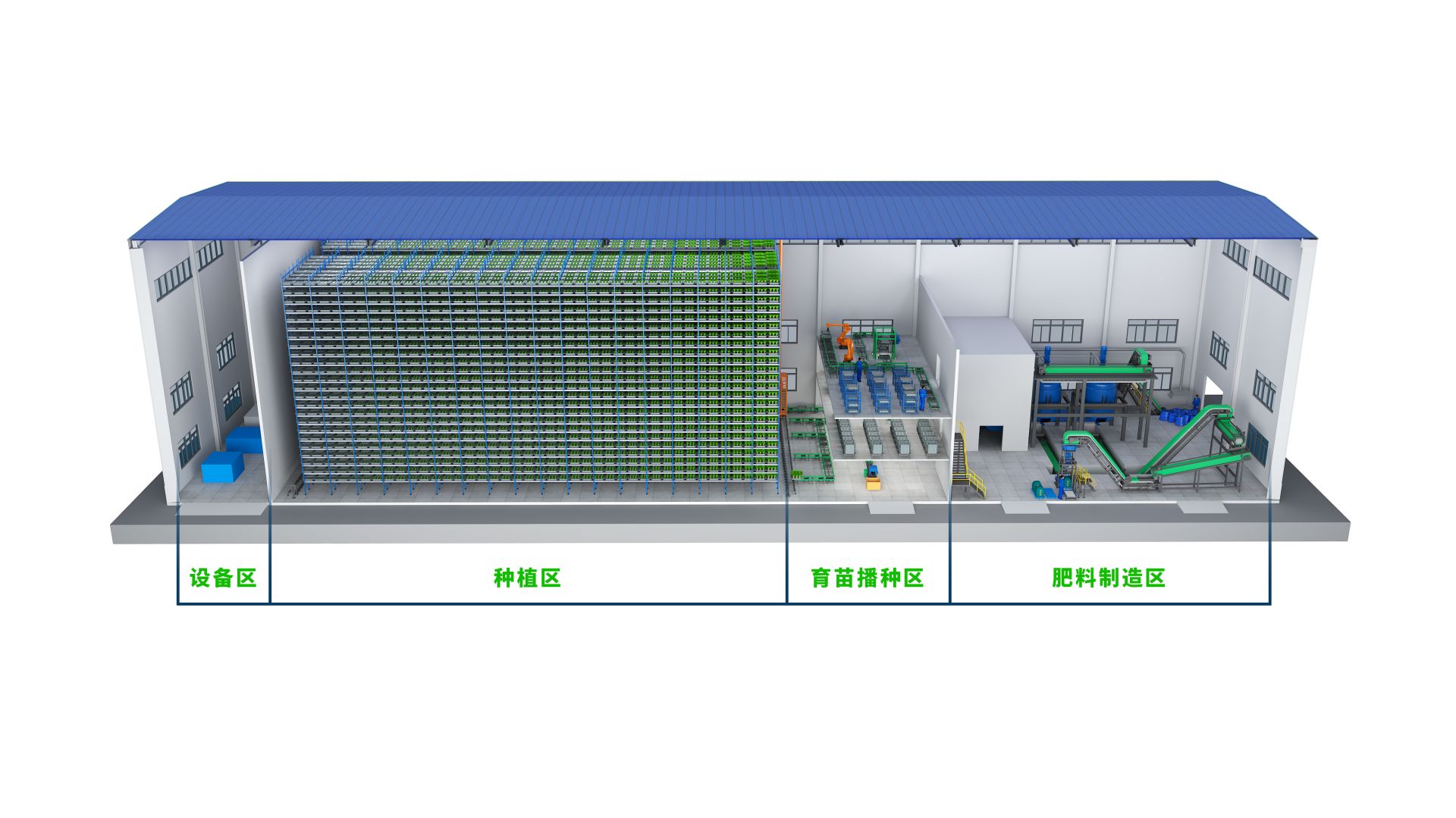 工業化立體垂直農場是一種通過在多層立體結構(如高樓、廠房、集裝箱、倉庫等)中採用室內農業技術種植農作物的新型農業模式。它通過人工控制光照、溫度、濕度、養分等環境因素,實現全年無間斷生產,不受氣候、地理或季節限制。