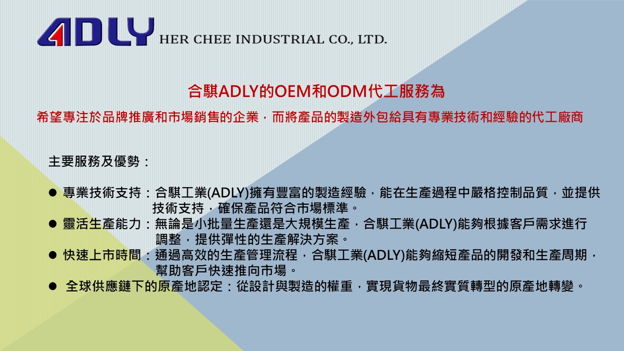 專業技術支持:合騏工業(ADLY)擁有豐富的製造經驗,能在生產過程中嚴格控制品質,並提供技術支持,確保產品符合市場標準。