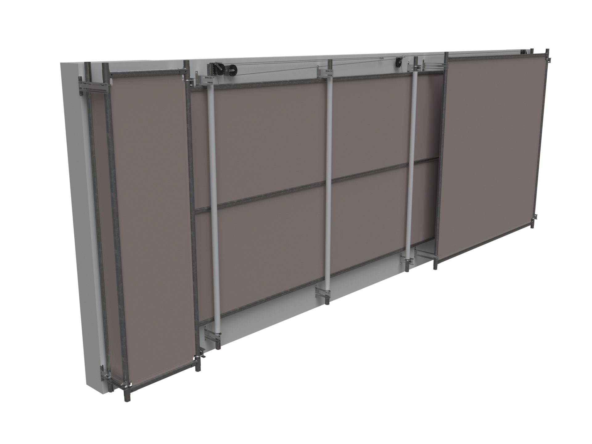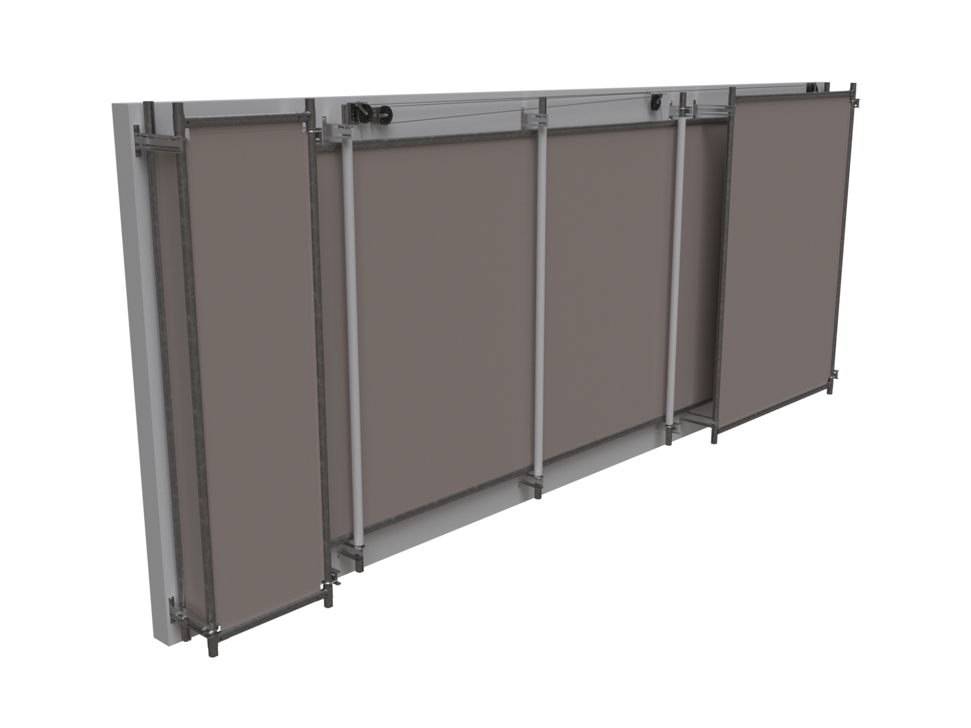 單層捲簾使用爬升馬達和伸縮拉臂從底部進行變量開啟。單層上捲和雙層上捲捲簾都可用作側牆捲簾,允許並調節空氣進入畜舍,也可用於畜舍的山牆端,以及作為擋板增加風速,同時重新導向橫流通風畜舍中的氣流。