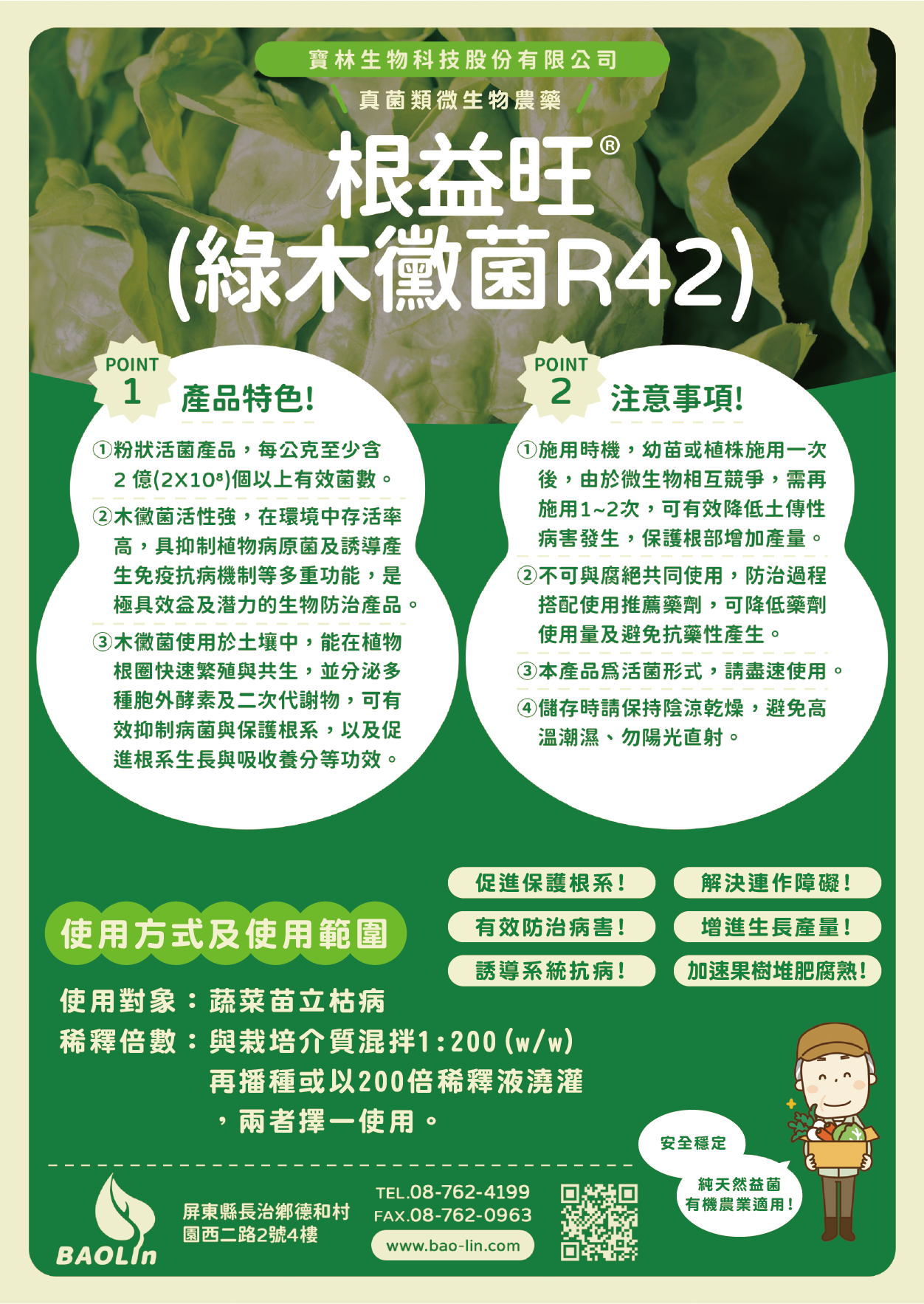 木黴菌因具備有超寄生、根系纏繞等效益,對於作物根系圈之保護與抗逆境提升都有很好的效果。