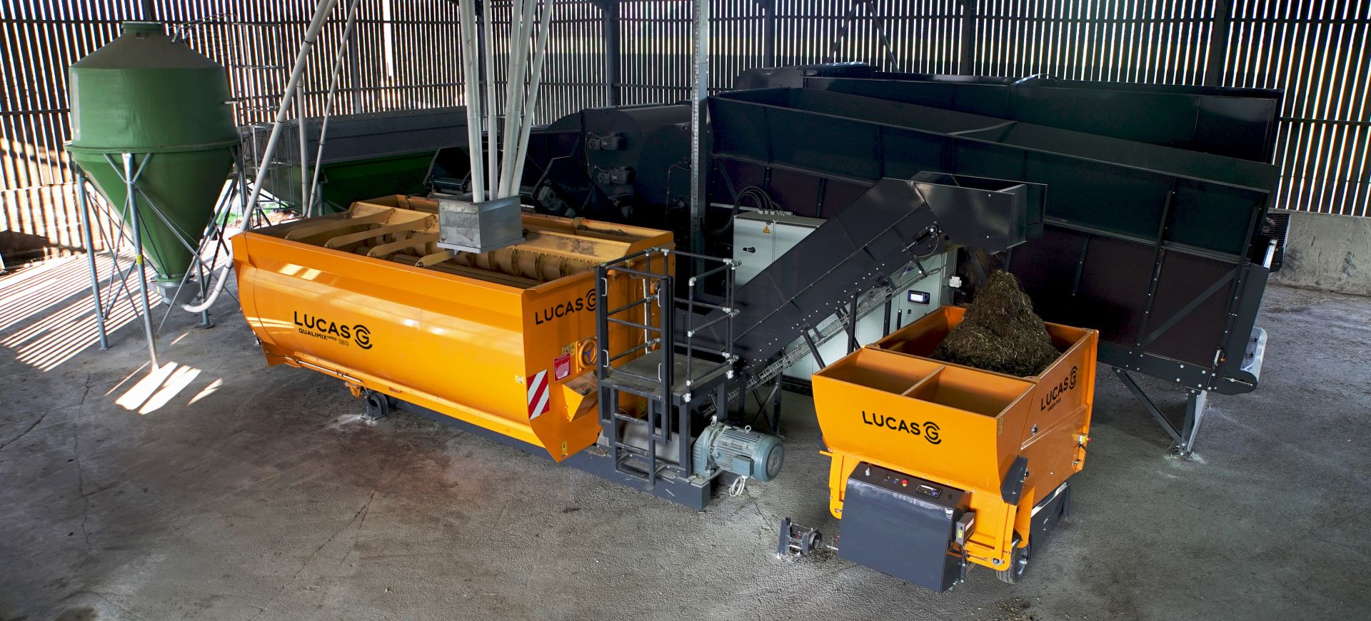 5. 廚房與配送:按牧場芻料使用量與種類來選擇模組化草盤的尺寸與數量。日糧混合機可選擇臥式或直立式,兩者皆提供高品質的混合功能,能均勻混合飼糧並保留其營養成份。精確的配料秤重系統和精準設定的裝料程序、攪拌速度和混合時間,能日復一日保障每一批飼糧穩定的一致性。