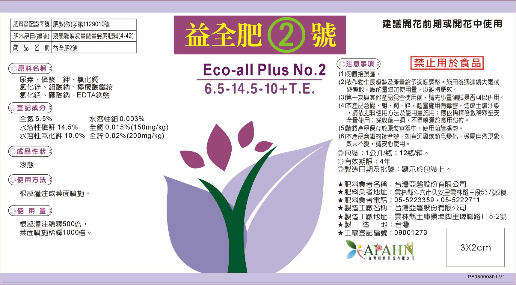 針對不同植物生長期強化微量元素(+TE)