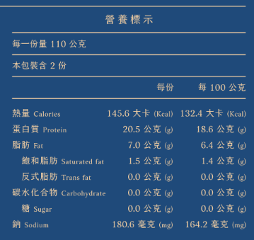 保 存 方 法:-18oC冷凍保存,避免調理包刺破或重摔。