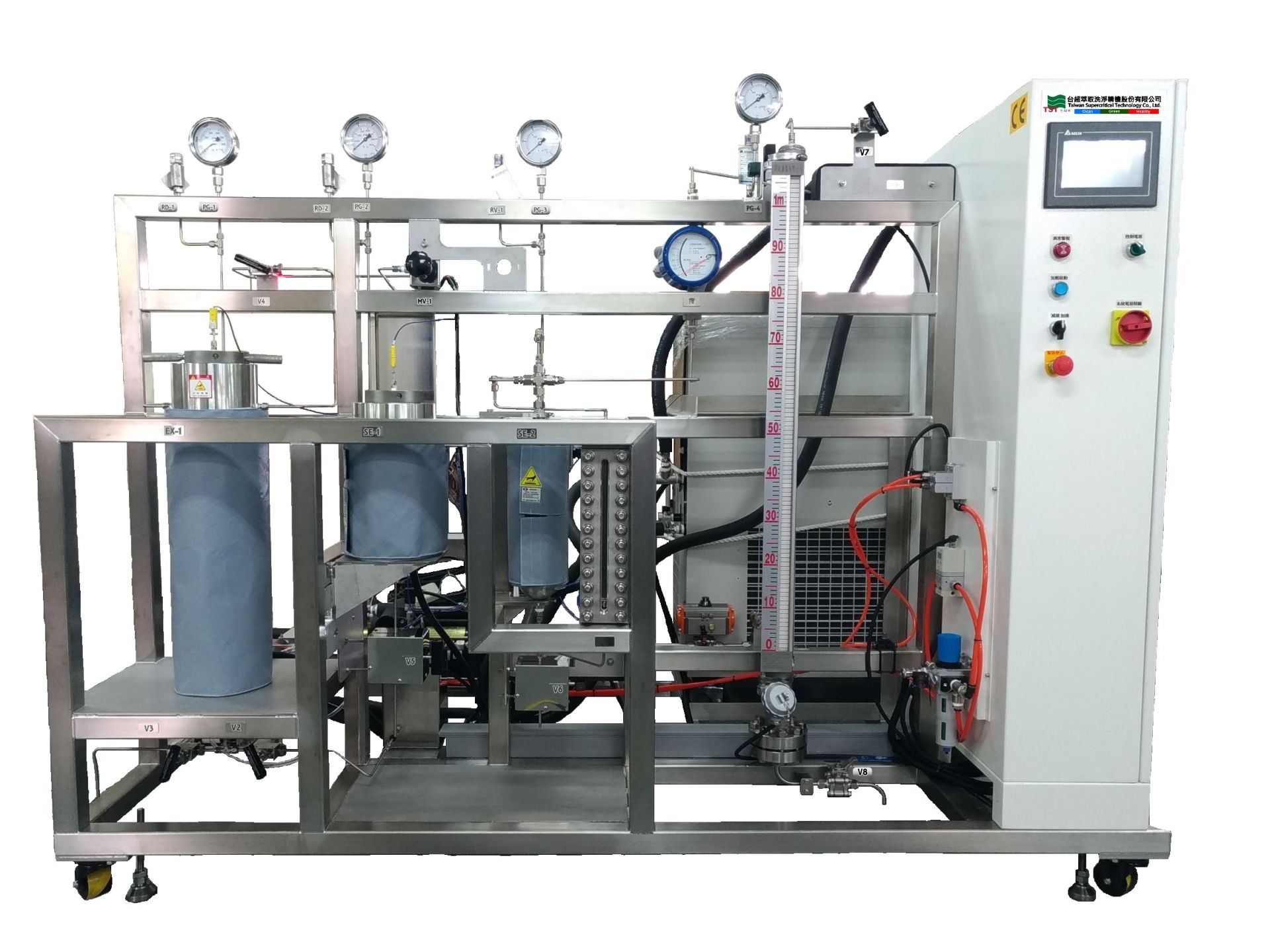 2. 完整設備包括:萃取槽、分離槽、觸控式增壓系統、冷卻系統、加熱系統、管路循環系