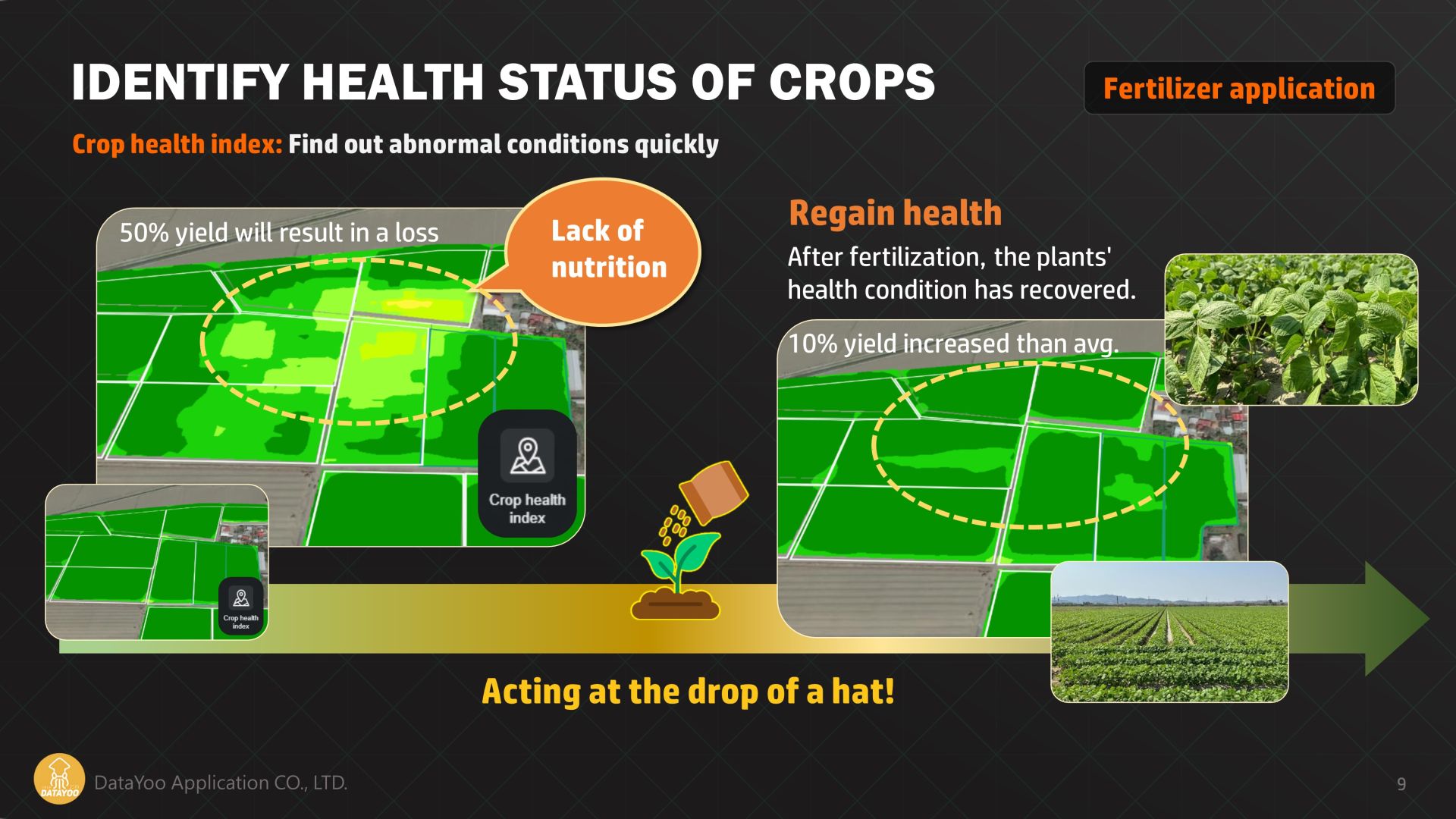Integrating diverse data sources, including satellite imagery, it comprehensively monitors and analyzes extensive farmlands. This enables farmers to effectively oversee operations across vast fields, providing key metrics for crafting targeted planting strategies. These metrics ensure optimal harvesting times, prompt pest and disease control, and optimized irrigation decisions, while also addressing challenges posed by extreme weather events and climate change. By enabling remote precision management, FarmiSpace significantly enhances agricultural scalability and modernization.