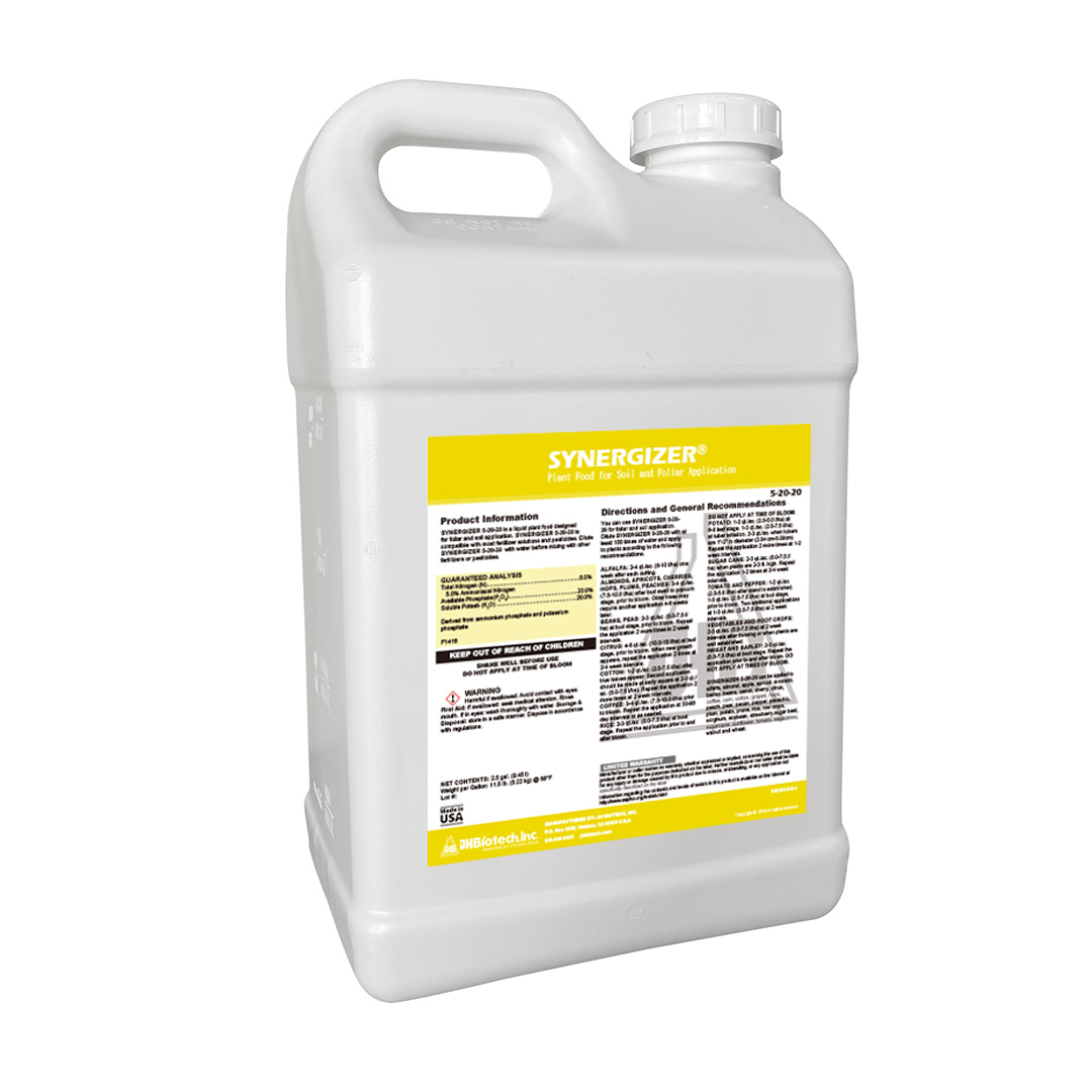 Synergizer at the proper times will result in lively crops and greater retention of flowers and fruits.