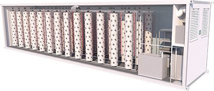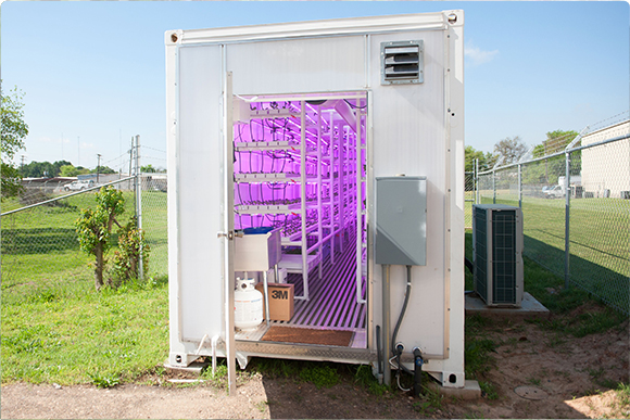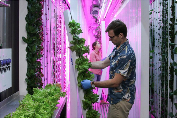 It is a fully turnkey agricultural system, eliminating concerns about weather, pests, heating costs, or water. A 29-square-meter or 320-square-foot container can produce crop yields equivalent to one acre of traditional land or 2,200 square feet (205 square meters) of greenhouse production.