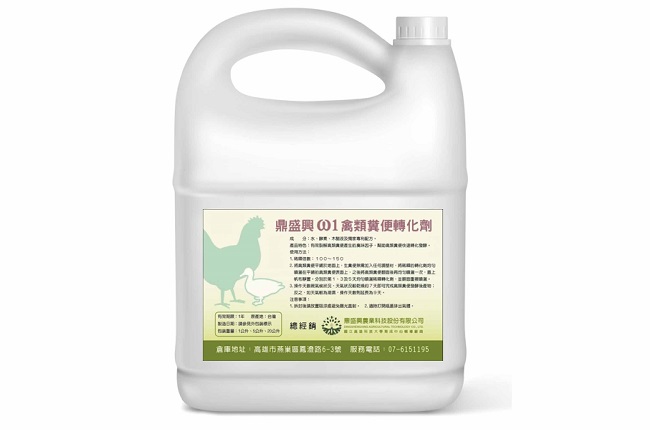 臺灣畜養高達4億餘雞隻,每年產生超過200萬公噸雞糞,因應環境之需農業部明令管制雞糞,致處理雞糞成本高漲,因此成立鼎盛興農業科技公司成功研發出「禽類糞便轉化劑」,以自然界中生物間天敵相剋作為研發概念,產品成分天然,經由酵素萃取,生物技術裂解方式,除去異味根源,縮短雞糞發酵時間更成為優質肥料。