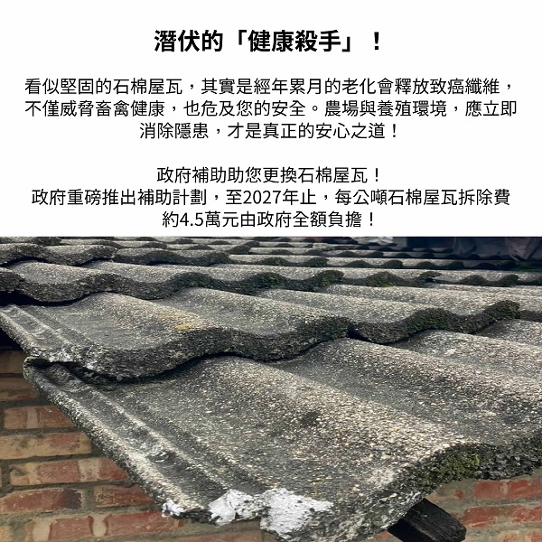 石綿屋瓦拆除補助 畜牧場明年列優先對象